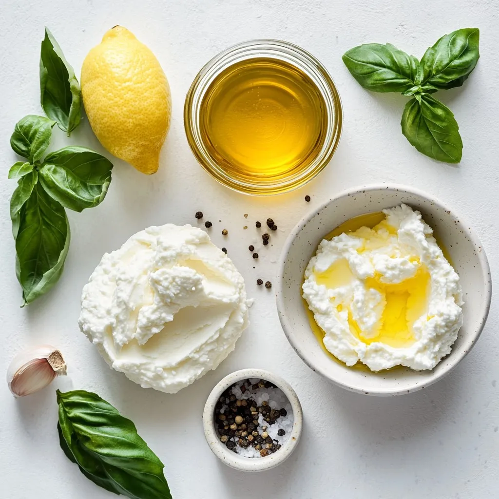 Hauptzutaten für den Baked Lemon Ricotta Dip