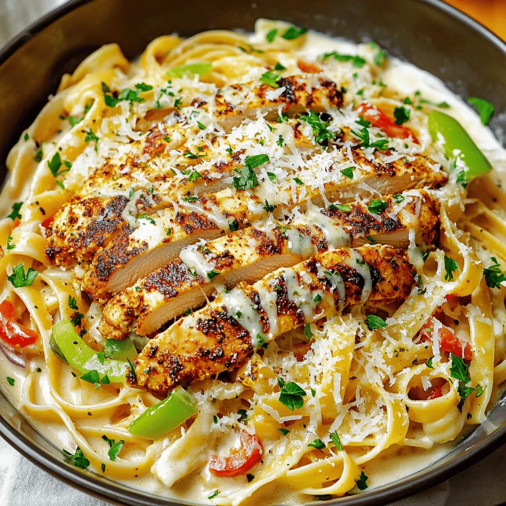 ![- 2 Hähnchenbrustfilets, ohne Knochen und Haut - 225 g Fettuccine-Nudeln - 1 rote Paprika, in Streifen geschnitten - 1 grüne Paprika, in Streifen geschnitten - 1 kleine Zwiebel, gehackt - 3 Knoblauchzehen, fein gehackt Für das Gericht benötigst du frische Hauptzutaten. Die Hähnchenbrustfilets sind die Basis. Sie bringen den Geschmack und die Proteine. Fettuccine-Nudeln geben dem Gericht eine schöne Textur. Außerdem sorgen Paprika, Zwiebel und Knoblauch für eine bunte und schmackhafte Note. - 2 Esslöffel Cajun-Gewürz - 240 ml Schlagsahne - 240 ml Hühnerbrühe - 50 g geriebener Parmesan - Salz und Pfeffer nach Geschmack Die Gewürze machen das Gericht besonders. Cajun-Gewürz bringt Wärme und Tiefe. Die Soße aus Schlagsahne und Hühnerbrühe sorgt für Cremigkeit. Parmesan verleiht einen herzhaften Geschmack. Salz und Pfeffer sind wichtig, um alles abzurunden und die Aromen hervorzuheben. - Frische Petersilie, gehackt zur Dekoration Die Dekoration ist mehr als nur schön. Frische Petersilie gibt dem Gericht Farbe und einen frischen Geschmack. Sie hebt das gesamte Gericht hervor und macht es ansprechender. Du kannst sie einfach kurz vor dem Servieren darüber streuen. Für das vollständige Rezept, siehe [Full Recipe]. Würzen Sie die Hähnchenbrustfilets mit Cajun-Gewürz. Massieren Sie das Gewürz gut in das Fleisch ein. So kommt der volle Geschmack heraus. Lassen Sie das gewürzte Hähnchen etwas ruhen, damit die Gewürze einziehen. Erhitzen Sie Olivenöl in einer großen Pfanne. Stellen Sie die Temperatur auf mittelhoch. Fügen Sie die Hähnchenbrustfilets hinzu und braten Sie sie etwa 7-8 Minuten pro Seite. Achten Sie darauf, dass sie nicht anbrennen. Das Hähnchen ist fertig, wenn der Saft klar austritt. Nehmen Sie es aus der Pfanne und lassen Sie es ruhen. Bringen Sie einen großen Topf mit gesalzenem Wasser zum Kochen. Fügen Sie die Fettuccine-Nudeln hinzu und kochen Sie sie nach den Anweisungen auf der Verpackung. Prüfen Sie die Nudeln nach etwa 8-10 Minuten. Sie sollten al dente sein. Gießen Sie die Nudeln ab und stellen Sie sie beiseite. Verwenden Sie die gleiche Pfanne für das Gemüse. Geben Sie die geschnittenen Paprika und die gehackte Zwiebel hinein. Braten Sie sie etwa 3-4 Minuten an, bis sie weich sind. Fügen Sie den gehackten Knoblauch hinzu und braten Sie ihn eine weitere Minute. So wird das Gemüse schön aromatisch. Gießen Sie die Schlagsahne und Hühnerbrühe in die Pfanne. Rühren Sie gut um, damit sich alles vermischt. Bringen Sie die Mischung zum Simmern. Fügen Sie dann den geriebenen Parmesan hinzu. Rühren Sie weiter, bis der Käse schmilzt und die Soße dick wird. Abschmecken mit Salz und Pfeffer. Geben Sie die gekochten Fettuccine in die Pfanne mit der Soße. Mischen Sie alles gut, damit die Nudeln gleichmäßig bedeckt sind. Servieren Sie die Pasta in einer großen Schüssel oder auf Tellern. Schneiden Sie das Hähnchen in Streifen und legen Sie es oben auf die Pasta. Für das vollständige Rezept besuchen Sie den Abschnitt „Full Recipe“. Die Soße sollte cremig und leicht dick sein. Um die perfekte Konsistenz zu erreichen, füge die Schlagsahne langsam hinzu. Lass die Soße köcheln, damit sie eindickt. Wenn die Soße zu dick ist, gib etwas Hühnerbrühe hinzu. Für mehr Geschmack, schmecke mit Salz und Pfeffer ab. Um das Hähnchen saftig zu halten, brate es nicht zu lange. Brate es bei mittlerer Hitze für 7-8 Minuten pro Seite. Lass das Hähnchen nach dem Braten ruhen. So bleibt der Saft im Fleisch. Schneide es erst, wenn es etwas abgekühlt ist. Ein gutes Aussehen macht das Essen besser. Serviere die Pasta in einer großen Schüssel oder auf Tellern. Garniere sie mit frischer Petersilie und mehr Parmesan. Das gibt einen schönen Farbkontrast und sieht lecker aus. Ein ansprechendes Gericht macht immer Eindruck. Für das gesamte Rezept, schau dir die [Full Recipe] an. {{image_4}} Wenn du Cajun Chicken Pasta magst, kannst du auch eine vegetarische Variante machen. Anstelle von Hähnchen kannst du Tofu oder Tempeh verwenden. Diese Optionen nehmen die Aromen gut auf. Du kannst auch mehr Gemüse hinzufügen. Zucchini, Auberginen oder Spinat sind tolle Ergänzungen. Diese Gemüsesorten geben deiner Pasta mehr Farbe und Nährstoffe. Cajun-Gewürz kann scharf sein, aber du kannst die Schärfe anpassen. Verwende weniger von dem Gewürz, wenn du es milder magst. Du kannst auch Paprika oder weniger Cayennepfeffer nehmen. Wenn du mehr Hitze möchtest, füge etwas mehr Cayennepfeffer hinzu. Du kannst auch frische Chilis oder scharfe Sauce verwenden, um den Grad der Schärfe zu erhöhen. Experimentiere mit verschiedenen Mischungen, um deinen perfekten Geschmack zu finden. Fettuccine ist die klassische Wahl, aber du kannst andere Nudeln verwenden. Linguine oder Penne sind auch gute Optionen. Wenn du glutenfrei kochen möchtest, nimm glutenfreie Pasta. Zucchini-Nudeln sind eine weitere gesunde Alternative. Sie sind leicht und passen gut zu der cremigen Soße. Probiere verschiedene Nudeln aus und finde deine Lieblingskombination. Du kannst die Rezepte an deine Vorlieben anpassen, um sie einzigartig zu machen. Um deine Cajun Chicken Pasta frisch zu halten, lagere die Reste in einem luftdichten Behälter im Kühlschrank. Achte darauf, dass die Pasta vollständig abgekühlt ist, bevor du sie einpackst. So vermeidest du, dass sich Feuchtigkeit bildet. Du kannst die Reste auch in einzelnen Portionen aufbewahren. So hast du schnell eine leckere Mahlzeit bereit. Cajun Chicken Pasta bleibt im Kühlschrank bis zu drei Tage frisch. Nach dieser Zeit kann der Geschmack nachlassen und die Textur verändern. Wenn die Pasta nicht mehr gut riecht oder seltsam aussieht, ist es besser, sie wegzuwerfen. Achte darauf, dass die Reste gut abgedeckt sind, um den Verlust von Qualität zu verhindern. Die besten Methoden, um die Pasta erneut zu erwärmen, sind die Mikrowelle oder eine Pfanne. Wenn du die Mikrowelle nutzt, stelle die Pasta in eine Schüssel und füge einen Es