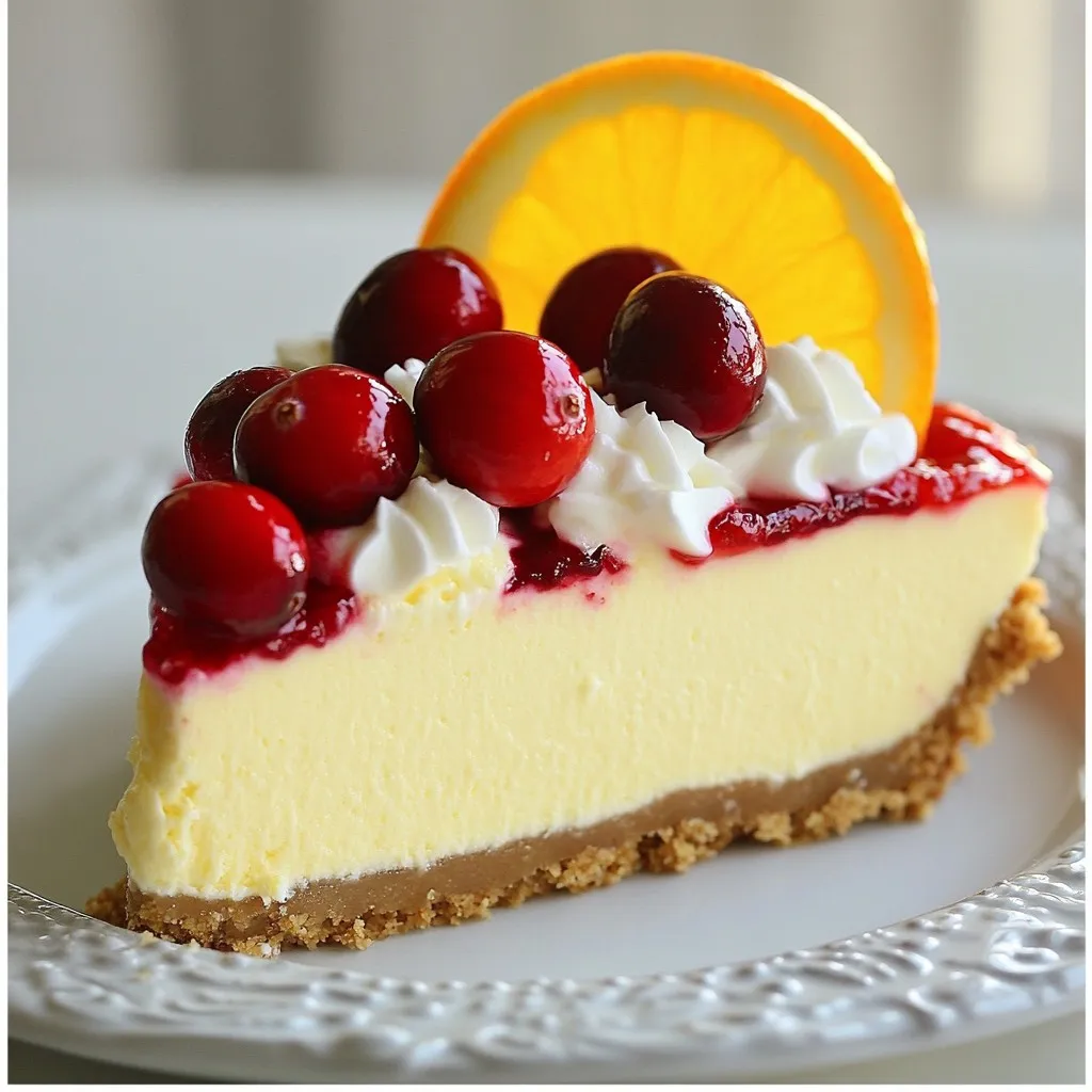 Ein köstlicher Käsekuchen mit Cranberries und Orangengeschmack.