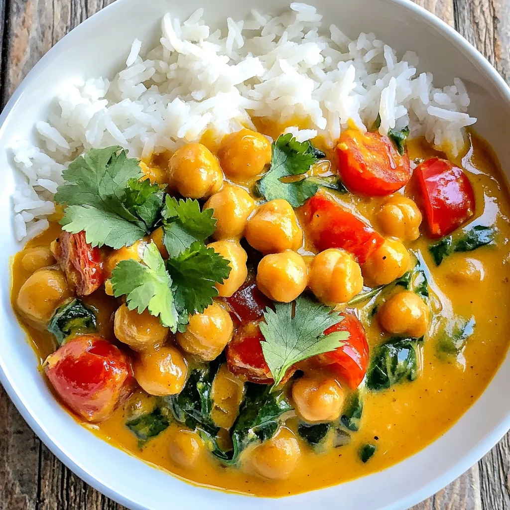 Ein köstliches und aromatisches Kichererbsencurry mit Kokosmilch und Gewürzen.