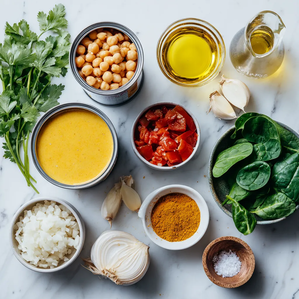 Für dein leckeres Kichererbsencurry brauchst du folgende Hauptzutaten:
