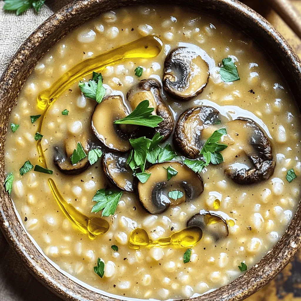 Um diese cremige Pilzgerste Suppe vegan zu machen, ersetze die Schlagsahne durch Kokoscreme. Diese cremige Option gibt der Suppe einen leichten, süßen Geschmack. Du kannst auch pflanzliche Butter anstelle von Olivenöl verwenden. Das bringt zusätzlichen Geschmack und hält die Suppe reichhaltig.
