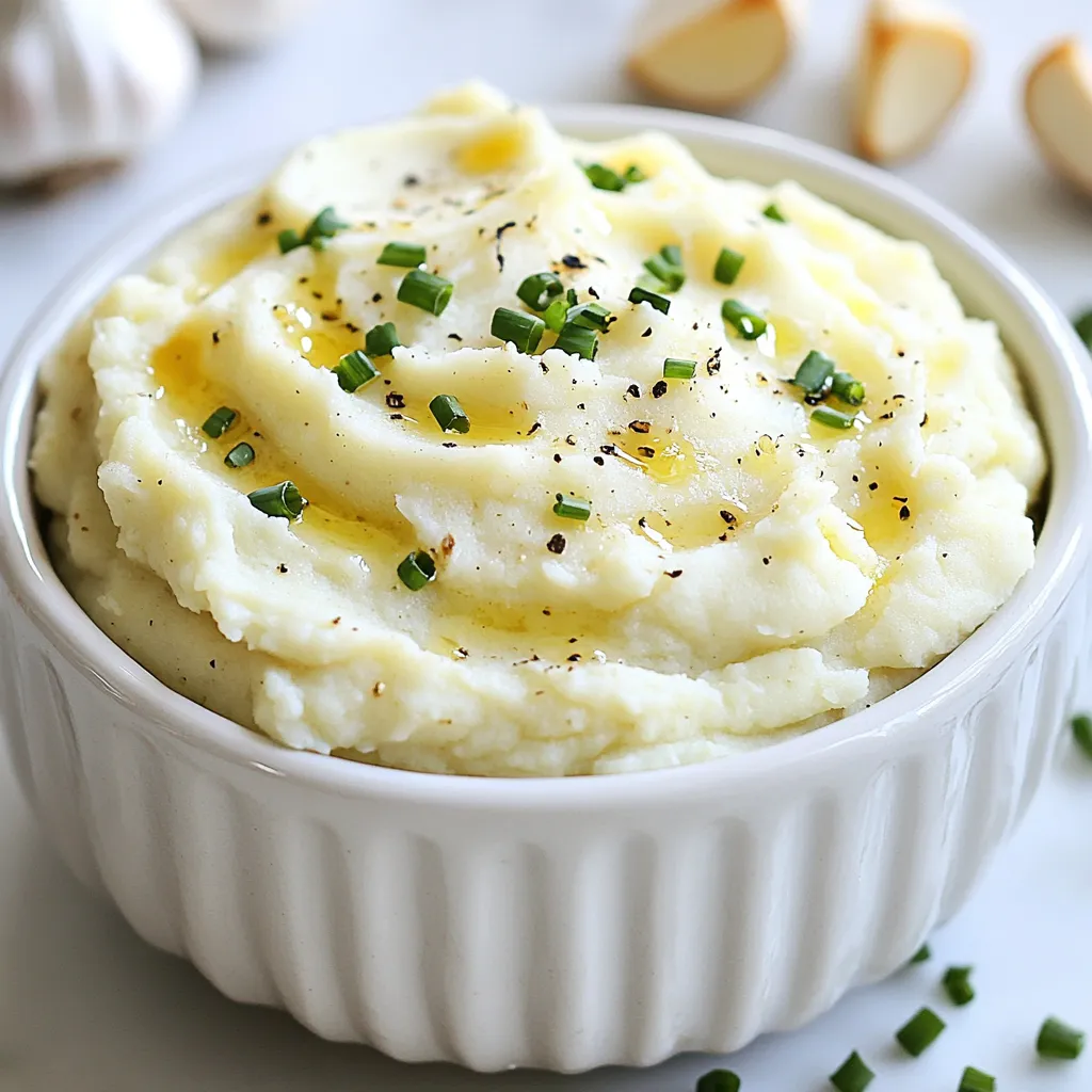 Ein cremiges und schmackhaftes Püree aus Blumenkohl und geröstetem Knoblauch, perfekt als Beilage.