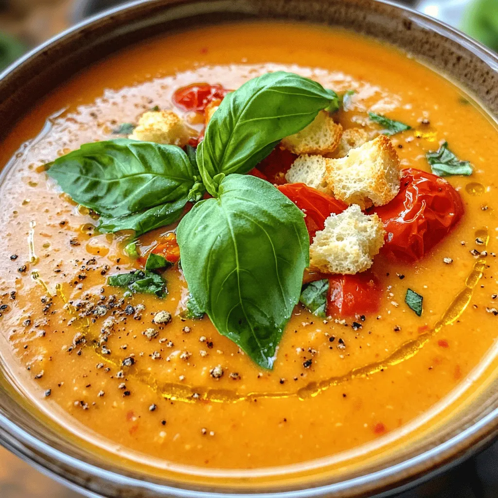 Entdecken Sie das Rezept für eine cremige geröstete Tomatensuppe, die einfach zuzubereiten und unglaublich lecker ist! Mit frischen, reifen Tomaten und aromatischen Kräutern zaubern Sie in nur 45 Minuten eine köstliche Mahlzeit. Perfekt für kalte Tage oder als leichte Vorspeise. Klicken Sie jetzt, um die vollständige Anleitung zu erfahren und genießen Sie diese wärmende Suppe heute Abend!