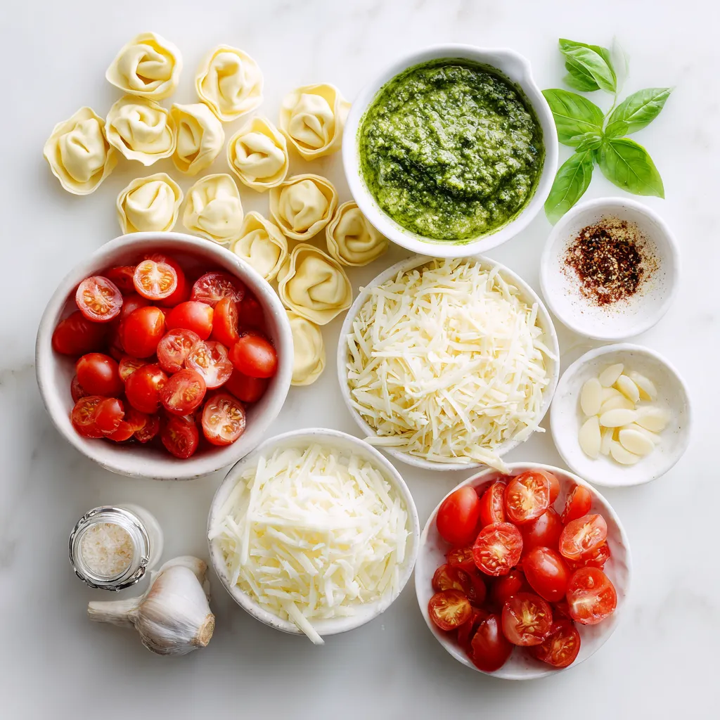 Liste der Zutaten für Cremige Pesto Tortellini Auflauf