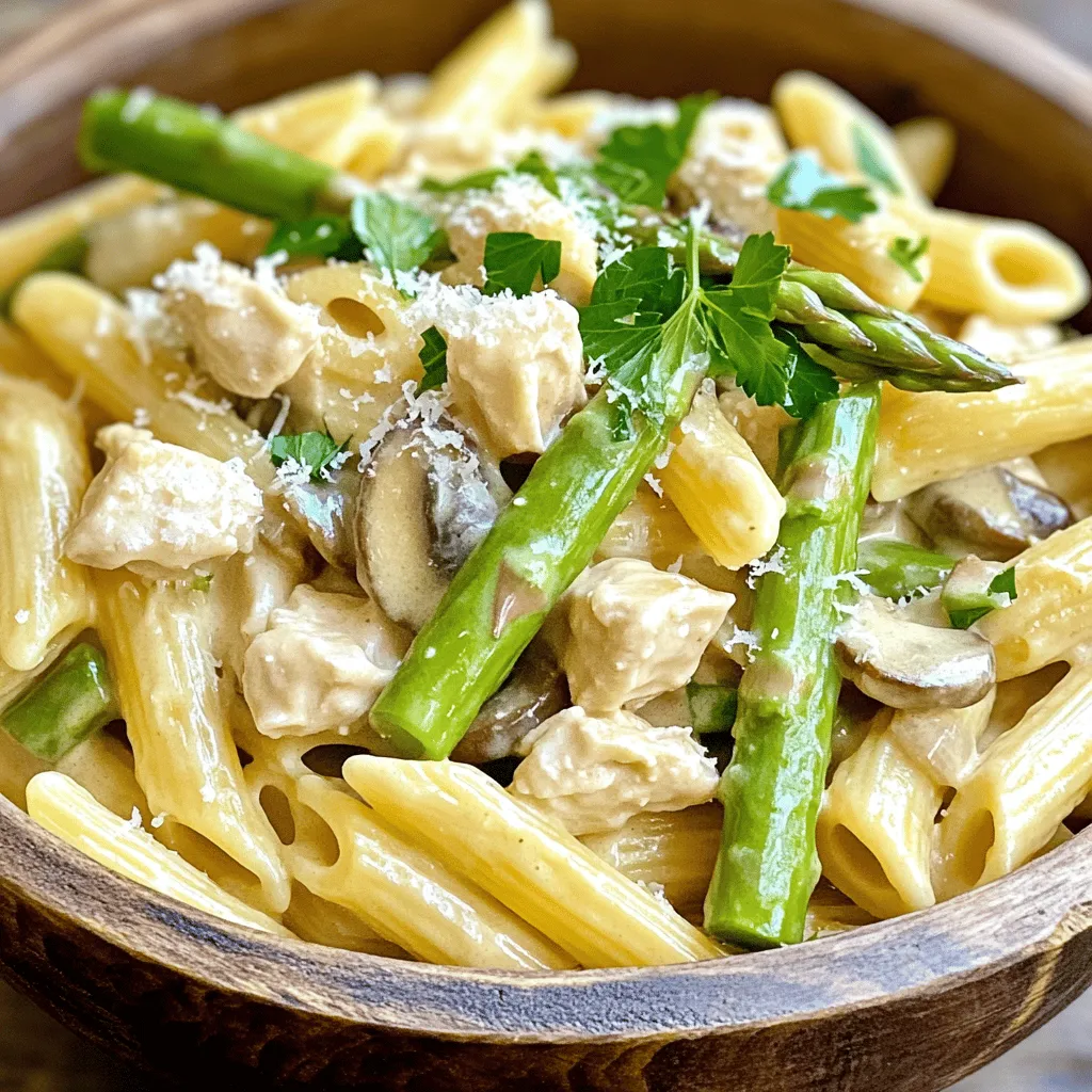 ![- 250 g Penne-Nudeln - 2 Hähnchenbrustfilets - 250 g Spargel - 250 g Champignons - 240 ml Schlagsahne - 50 g Parmesan - 2 Knoblauchzehen - Olivenöl, Salz und Pfeffer - Frische Petersilie Für dieses Rezept benötigst du frische und hochwertige Zutaten. Die Penne-Nudeln sind die perfekte Grundlage. Sie nehmen die cremige Sauce gut auf. Wähle für das Hühnchen saftige Hähnchenbrustfilets. Diese geben dem Gericht viel Geschmack. Der Spargel bringt eine knackige Textur mit. Champignons fügen eine erdige Note hinzu. Die Schlagsahne macht die Sauce schön cremig. Parmesan sorgt für den herzhaften Geschmack, den wir lieben. Knoblauch bringt zusätzliches Aroma. Ich empfehle, frisches Olivenöl zu verwenden. Es verleiht dem Gericht einen feinen Geschmack. Vergiss nicht, mit Salz und Pfeffer abzuschmecken. Für die Garnierung verwende frische Petersilie. Sie bringt Farbe und einen frischen Geschmack. Diese Zutaten machen das Gericht zu einer echten Köstlichkeit. Wenn du mehr Details zur Zubereitung möchtest, schau dir das Full Recipe an. Um die Penne-Nudeln perfekt zu kochen, nimm einen großen Topf. Fülle ihn mit gesalzenem Wasser und bringe es zum Kochen. Füge die Penne-Nudeln hinzu. Koche sie laut den Anweisungen auf der Verpackung, bis sie al dente sind. Das bedeutet, sie sollten bissfest sein. Danach gieße die Nudeln ab und stelle sie beiseite. Ein kleiner Tipp: Das Wasser sollte sprudelnd kochen, bevor du die Nudeln hinzufügst. So bleibt die Konsistenz besser. Erhitze das Olivenöl in einer großen Pfanne bei mittlerer Hitze. Gib die gewürfelten Hähnchenbrustfilets in die Pfanne. Würze das Hühnchen mit Salz und Pfeffer. Koche es für etwa 5 bis 7 Minuten. Das Hühnchen sollte goldbraun und durchgegart sein. Dann nimm es aus der Pfanne und lege es beiseite. Achte darauf, dass das Hühnchen nicht zu lange brät, sonst wird es trocken. In derselben Pfanne fügst du den gehackten Knoblauch hinzu. Brate ihn etwa eine Minute an, bis er duftet. Dann kommen die geschnittenen Champignons und die Spargelstücke dazu. Rühre alles gut um. Koche das Gemüse für 3 bis 4 Minuten. Die Champignons sollten zart, und der Spargel leuchtend grün sein. Das Anbraten des Knoblauchs bringt viel Geschmack. Senke die Hitze und gieße die Schlagsahne in die Pfanne. Lass die Mischung sanft köcheln. Rühre dann den frisch geriebenen Parmesan ein, bis er schmilzt. Die Sauce wird cremig und lecker. Schmecke alles mit Salz und Pfeffer ab. Wenn du einen besonderen Kick magst, kannst du auch etwas Muskatnuss hinzufügen. Gib das angebratene Hühnchen zurück in die Pfanne. Füge die abgetropften Penne-Nudeln hinzu. Mische alles vorsichtig, damit die Nudeln gut mit der cremigen Sauce überzogen sind. Achte darauf, die Temperatur nicht zu hoch zu stellen, damit nichts anbrennt. Das Vermengen sorgt dafür, dass alle Aromen gut zusammenkommen. Serviere das Hühnchen-Penne in schönen Schalen. Garniere das Gericht mit frisch gehackter Petersilie. Das bringt Farbe und Geschmack. Ein zusätzlicher Tipp: Du kannst auch etwas geriebenen Parmesan obendrauf streuen. Ein Zitronenschnitz an der Seite fügt einen frischen Geschmack hinzu. Für die vollständige Zubereitung schaue dir das [Full Recipe] an. Um die Sauce perfekt cremig zu machen, achte auf die Schlagsahne. Wenn du sie magst, kannst du mehr verwenden. Für eine leichtere Option nimm Joghurt oder Frischkäse. Diese Alternativen geben dir eine ähnliche Cremigkeit. Gewürze sind der Schlüssel zur Geschmacksverbesserung. Probiere Thymian oder Oregano für ein frisches Aroma. Eine Prise Muskatnuss kann der Sauce Tiefe verleihen. Hast du Lust auf etwas Schärfe? Füge rote Pfefferflocken hinzu. Diese kleinen Extras machen einen großen Unterschied. Wenn du neu in der Küche bist, starte einfach. Lerne die Grundlagen. Schneide das Gemüse klein, damit es gleichmäßig kocht. Achte darauf, das Hühnchen gut zu würzen. Vermeide es, die Hitze zu hoch einzustellen, sonst wird das Essen schnell anbrennen. Ein häufiger Fehler ist, die Pasta zu lange zu kochen. Sie sollte al dente sein, also noch einen kleinen Biss haben. Wenn du all diese Tipps befolgst, wird dein cremiges Pilz- und Spargel-Hühnchen-Penne sicher lecker! Schau dir auch das [Full Recipe] an, um alles im Detail zu sehen. {{image_4}} Um das Hühnchen in diesem Gericht zu ersetzen, nutzen Sie Tofu. Tofu hat eine tolle Textur und nimmt gut den Geschmack auf. Schneiden Sie den Tofu in Würfel und braten Sie ihn goldbraun an. Dadurch wird er knusprig und lecker. Für vegane Alternativen verwenden Sie Pflanzenmilch und einen veganen Käse. Diese Optionen machen das Gericht für jeden zugänglich. Fügen Sie zusätzliches Gemüse hinzu, um mehr Farben und Nährstoffe zu erhalten. Brokkoli, Erbsen oder Paprika passen gut. Diese Gemüsesorten bringen frische Aromen und sind einfach zu finden. Saisonale Zutaten wie Zucchini oder Kürbis bieten Abwechslung und Geschmack. Experimentieren Sie mit verschiedenen Kombinationen, um Ihr Gericht zu personalisieren. Verwenden Sie andere Pasta-Sorten, um Abwechslung zu schaffen. Fusilli oder Farfalle sind tolle Alternativen zu Penne. Für eine glutenfreie Option probieren Sie Linsen- oder Kichererbsennudeln. Diese Nudeln sind nahrhaft und lecker. Achten Sie darauf, die Kochzeiten entsprechend anzupassen. So bleibt Ihr Gericht perfekt und schmackhaft. Für das komplette Rezept, schauen Sie sich den [Full Recipe](#) an. Lagern Sie die Reste in einem luftdichten Behälter. Lassen Sie das Gericht zuerst abkühlen. Im Kühlschrank bleibt es bis zu drei Tage frisch. Achten Sie darauf, dass die Reste gut verschlossen sind, um Gerüche zu vermeiden. Um das Gericht aufzuwärmen, nutzen Sie eine Pfanne oder die Mikrowelle. Bei der Pfanne, erhitzen Sie es bei mittlerer Hitze. Fügen Sie etwas Wasser oder Brühe hinzu, um die Sauce nicht zu trocken werden zu lassen. In der Mikrowelle, benutzen Sie eine Abdeckung für gleichmäßiges Erwärmen. Rühren Sie das Gericht alle 30 Seku