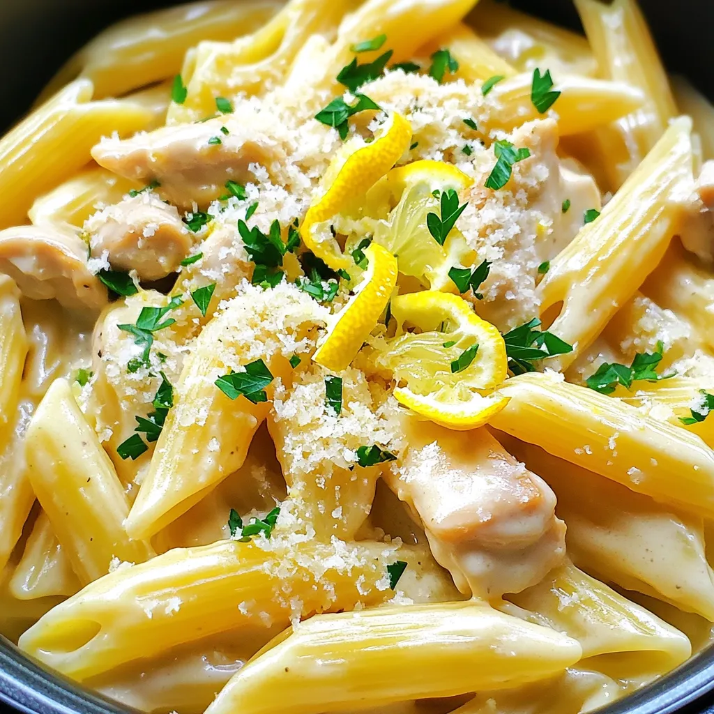 Für diese einfache und leckere Pasta benötigst du folgende Hauptzutaten: - 450g Hähnchenbrustfilet, in mundgerechte Stücke geschnitten - 225g Pasta (Penne oder Rotini sind am besten geeignet) - 1 Esslöffel Olivenöl - 1 kleine Zwiebel, gewürfelt - 3 Knoblauchzehen, fein gehackt - 240ml Hühnerbrühe - 240ml Schlagsahne - Schale von 1 Zitrone - Saft von 1 Zitrone - 1 Teelöffel getrockneter Oregano - Salz und Pfeffer nach Geschmack - Frische Petersilie, gehackt (zum Garnieren) - Geriebener Parmesan (optional) Diese Zutaten machen das Gericht frisch und cremig. Die Zitrone bringt eine spritzige Note. Die Gewürze sind wichtig für den Geschmack. Ich benutze: - Salz und Pfeffer, um die Aromen zu verstärken. - Getrockneter Oregano gibt der Pasta eine herzhafte Note. - Frische Petersilie bringt Farbe und Frische ins Gericht. Diese einfachen Gewürze machen einen großen Unterschied. Sie heben die Zitrone und das Hähnchen hervor. Die Wahl der Pasta ist wichtig für den Erfolg. Ich empfehle: - Penne, weil sie die Sauce gut festhält. - Rotini, da die Spiralen viel Sauce einfangen. Beide Sorten sind perfekt für diese cremige Zitronen-Hühnchen-Pasta. Sie sorgen für eine tolle Textur. Beginnen Sie mit dem Schneiden des Hähnchenbrustfilets in kleine Stücke. Diese Stücke sollten gleichmäßig sein, damit sie gleichmäßig garen. Messen Sie dann die Pasta ab. Penne oder Rotini passen gut. Hacken Sie die Zwiebel und den Knoblauch fein. Diese Zutaten bringen viel Geschmack. Vergessen Sie nicht, die Zitrone zu reiben und ihren Saft auszupressen. Die Schale gibt einen frischen Duft und der Saft bringt Säure. Stellen Sie den Instant Pot auf 'Sauté'-Modus. Geben Sie das Olivenöl hinein und lassen Sie es warm werden. Fügen Sie die Zwiebel hinzu und braten Sie sie 3-4 Minuten lang. Sie sollten weich und durchsichtig werden. Dann kommt der Knoblauch dazu. Rühren Sie ihn eine Minute lang, bis er duftet. Jetzt fügen Sie die Hähnchenstücke hinein. Würzen Sie sie mit Salz und Pfeffer. Kochen Sie das Hähnchen etwa 5 Minuten, bis es nicht mehr rosa ist. Danach gießen Sie die Hühnerbrühe hinein. Kratzen Sie den Boden ab, um den Geschmack zu halten. Geben Sie die ungekochte Pasta, Zitronenschale, Zitronensaft und Oregano dazu. Rühren Sie vorsichtig, damit alles gut vermischt ist. Schließen Sie den Deckel und stellen Sie ihn auf 'Sealing'. Kochen Sie auf hoher Druckstufe für 6 Minuten. Nach der Kochzeit führen Sie einen schnellen Druckabbau durch. Öffnen Sie den Deckel und rühren Sie die Schlagsahne ein. Sie muss gut vermischt sein. Probieren Sie die Pasta und passen Sie die Gewürze mit Salz und Pfeffer an. Wenn die Sauce zu dick ist, können Sie den Instant Pot wieder auf 'Sauté' stellen. Erhitzen Sie das Gericht für 2-3 Minuten. Servieren Sie die Pasta heiß. Garnieren Sie sie mit gehackter Petersilie und nach Belieben mit geriebenem Parmesan. Guten Appetit! Um das Hühnchen zart zu halten, gibt es einige einfache Tricks. Wählen Sie frisches Hähnchenbrustfilet. Schneiden Sie es in gleich große Stücke. So garen alle Stücke gleichmäßig. Würzen Sie das Hühnchen gut mit Salz und Pfeffer. Dies bringt den Geschmack hervor. Achten Sie darauf, das Hähnchen nicht zu lange zu braten. Fünf Minuten sind genug. Durch das schnelle Kochen im Instant Pot bleibt das Hühnchen saftig. Die Sauce sollte cremig und glatt sein. Dazu fügen Sie die Schlagsahne zum Schluss hinzu. Rühren Sie sie gut ein, bis sie sich vermischt. Wenn die Sauce zu dick ist, geben Sie etwas Hühnerbrühe hinzu. So erreichen Sie die gewünschte Konsistenz. Wichtig ist, die Pasta gut mit der Sauce zu vermengen. Verwenden Sie einen großen Löffel, um alles gründlich zu mischen. Garnituren machen das Gericht besonders lecker. Frische Petersilie gibt Farbe und Frische. Streuen Sie sie direkt vor dem Servieren über die Pasta. Geriebener Parmesan passt ebenfalls gut dazu. Servieren Sie die Pasta mit einem einfachen grünen Salat. Auch ein Stück knuspriges Brot ist eine tolle Beilage. So wird das Essen noch genussvoller. {{image_4}} Wenn du die cremige Zitronen-Hühnchen-Pasta vegetarisch machen möchtest, ist das einfach. Du kannst das Hähnchen durch Gemüse ersetzen. Zum Beispiel eignen sich Zucchini, Paprika und Brokkoli gut. Schneide das Gemüse in kleine Stücke. Sauté das Gemüse im Instant Pot, bis es weich ist. Füge dann die Pasta und die anderen Zutaten wie gewohnt hinzu. Diese Variante wird ebenso lecker und cremig! Du kannst auch andere Proteine verwenden. Statt Hähnchen kannst du Putenbrust oder Garnelen nehmen. Wenn du Garnelen verwendest, füge sie erst in den letzten Minuten hinzu. Sie brauchen nicht lange zum Kochen. Das macht das Gericht schnell und einfach. Jede Proteinwahl bringt ihren eigenen Geschmack mit. Probiere es aus! Für eine glutenfreie Variante wähle glutenfreie Pasta. Es gibt viele Optionen im Handel. Stelle sicher, dass die Hühnerbrühe ebenfalls glutenfrei ist. Du kannst auch Zucchini-Nudeln nutzen. Sie sind gesund und passen gut zur Sauce. So bleibt das Gericht leicht und lecker. Egal welche Anpassung du wählst, die Geschmackskombination bleibt wunderbar! Um deine cremige Zitronen-Hühnchen-Pasta frisch zu halten, lagere sie in einem luftdichten Behälter. Lass die Pasta auf Raumtemperatur abkühlen, bevor du sie in den Kühlschrank stellst. So bleibt der Geschmack erhalten. Im Kühlschrank hält sie sich bis zu drei Tage. Wenn du Reste hast, kannst du die Pasta einfrieren. Teile sie in Portionen auf und lege sie in gefriergeeignete Behälter. Achte darauf, die Luft so gut wie möglich herauszudrücken. So bleibt die Pasta bis zu drei Monate frisch. Wenn du sie wieder auftauen möchtest, lass sie über Nacht im Kühlschrank auftauen. Um die Pasta wieder zu erwärmen, kannst du sie in der Mikrowelle oder auf dem Herd erhitzen. Wenn du sie auf dem Herd erwärmst, füge etwas Hühnerbrühe oder Wasser hinzu, um die Sauce cremig zu halten. Rühre gut um, um ein Anbrennen zu vermei