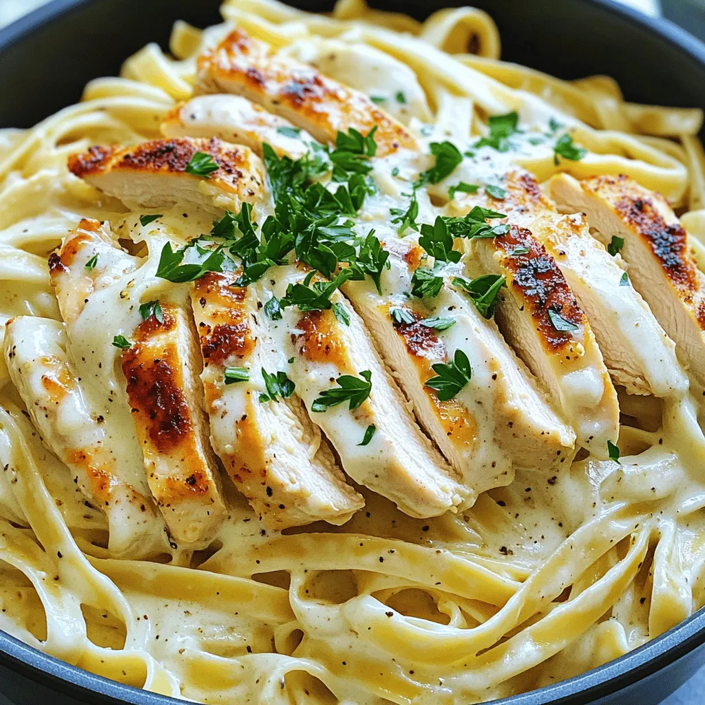 Die Hauptzutaten machen dieses Rezept einfach und lecker. Hähnchenbrustfilets sind mager und zart. Sie bieten eine gute Proteinquelle. Fettuccine-Pasta hat die perfekte Form, um die Sauce aufzunehmen. Schlagsahne gibt der Sauce die cremige Textur, die wir lieben.