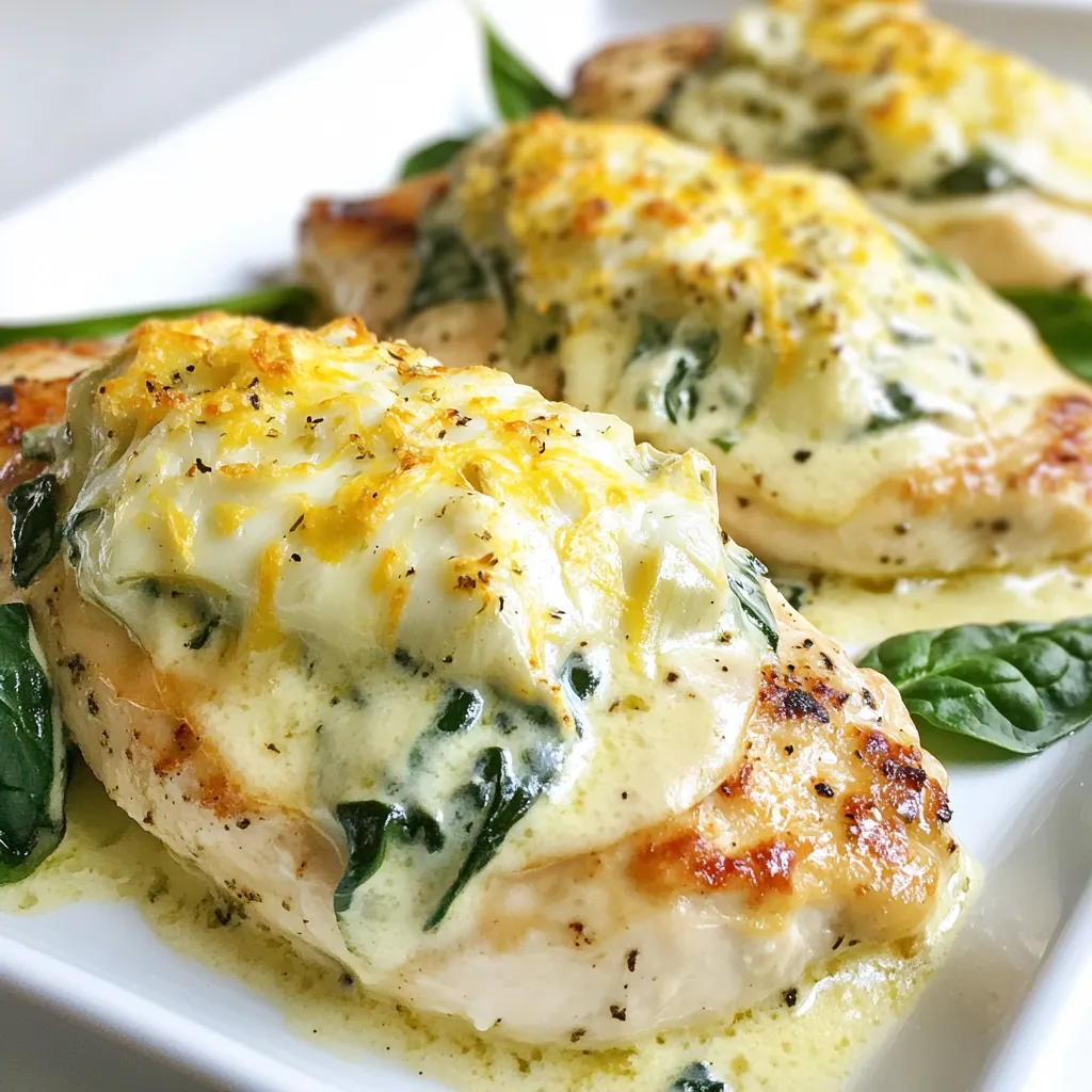 Ein köstliches und cremiges Hühnchenrezept mit Spinat und Artischocken.