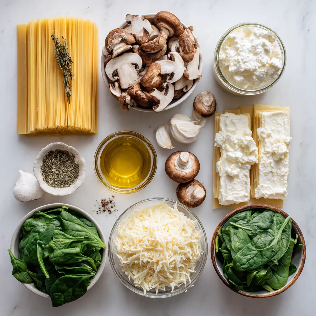 Diese Zutaten machen die Lasagne cremig und voll von Geschmack. Die Pilze bringen eine tolle Textur und einen reichen Geschmack. Ricotta und Mozzarella sorgen für die nötige Cremigkeit.