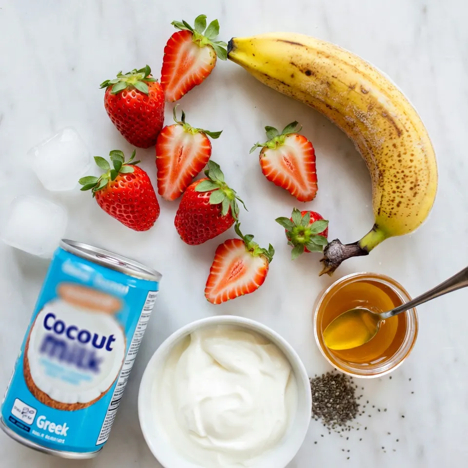 Vollständige Zutatenliste für den Erdbeer-Kokos-Smoothie