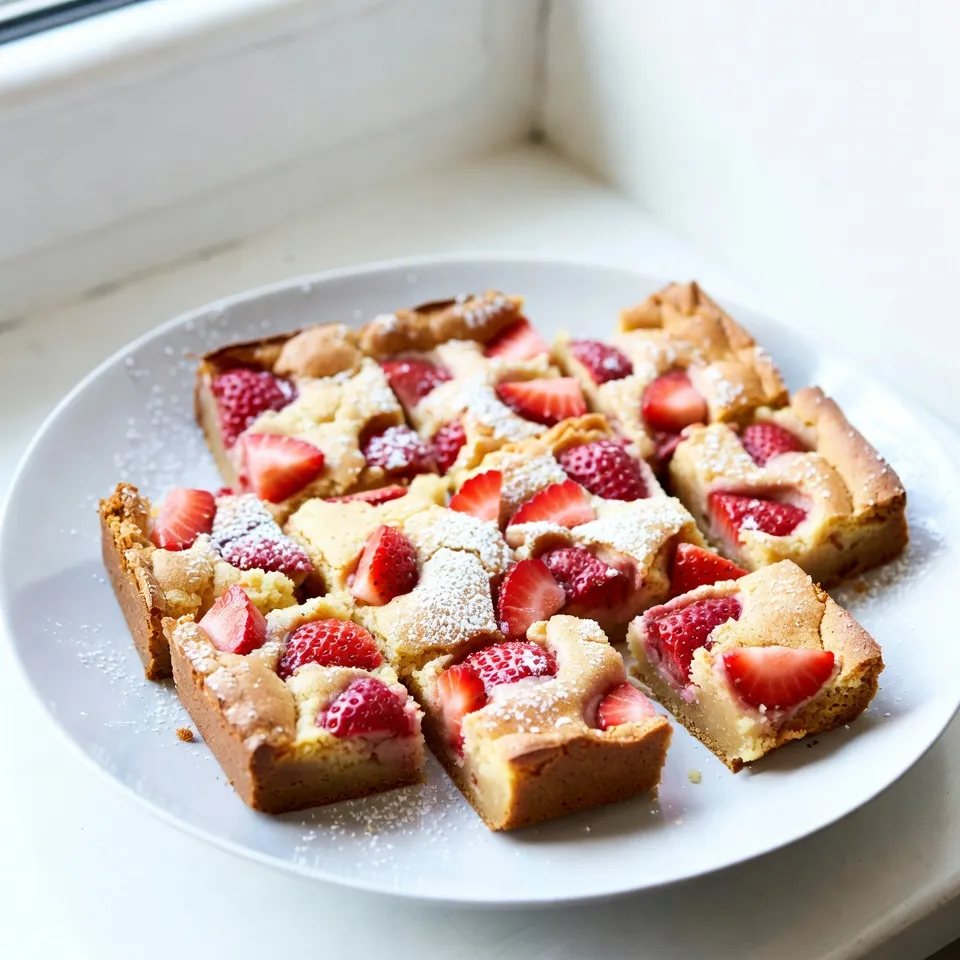 Leckere Blondies mit frischen Erdbeeren und einem Hauch von Zitrone.