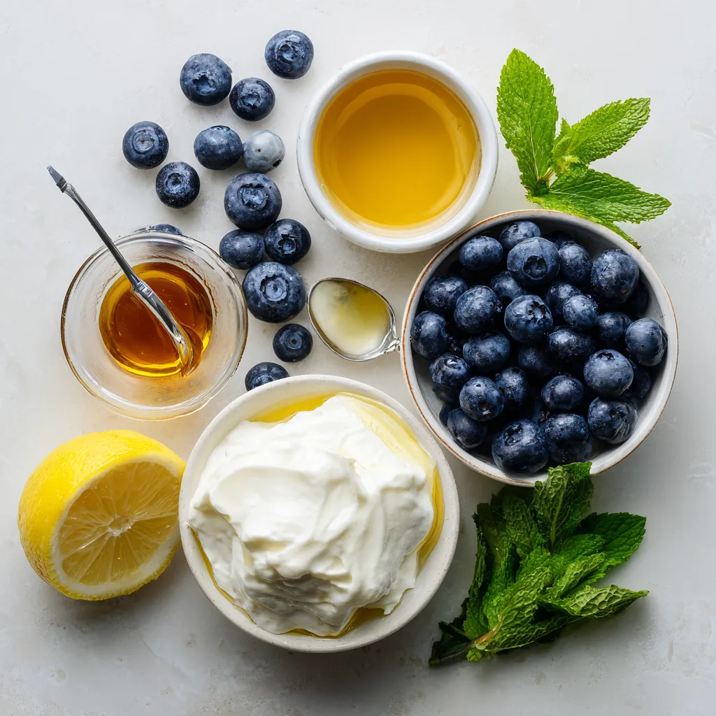 - Combine fresh blueberries, Greek yogurt, honey, lemon juice, lemon zest, and vanilla extract in a blender. Blend until smooth and creamy.