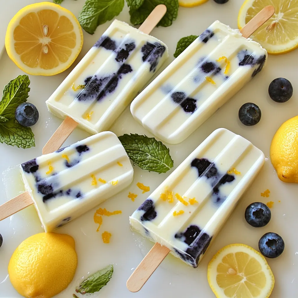Refreshing blueberry and lemon yogurt popsicles perfect for a hot day.