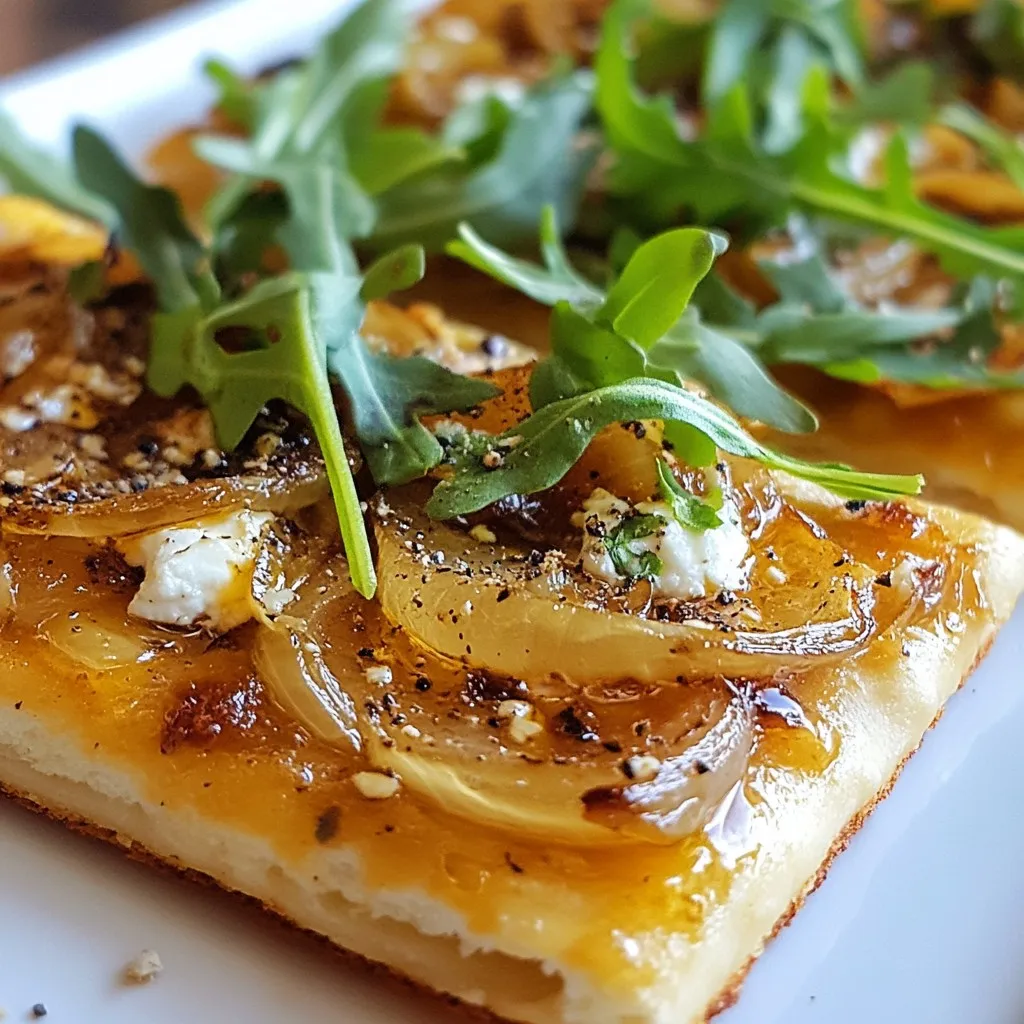 Belag hinzufügen: Verteilen Sie die karamellisierte Zwiebelmischung gleichmäßig auf dem Ziegenkäse.