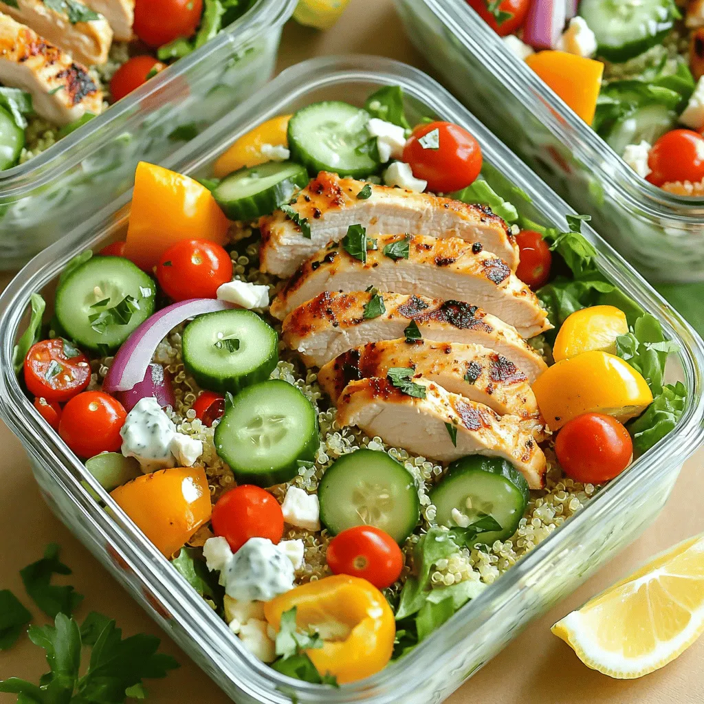Beginne mit der Basis. Verwende gekochte Quinoa oder braunen Reis. Lege eine große Handvoll gemischte Blattsalate darüber. Danach platziere die aufgeschnittene Hähnchenbrust oben. Füge die frische Gemüsemischung hinzu. Achte darauf, dass die Schüssel bunt aussieht.