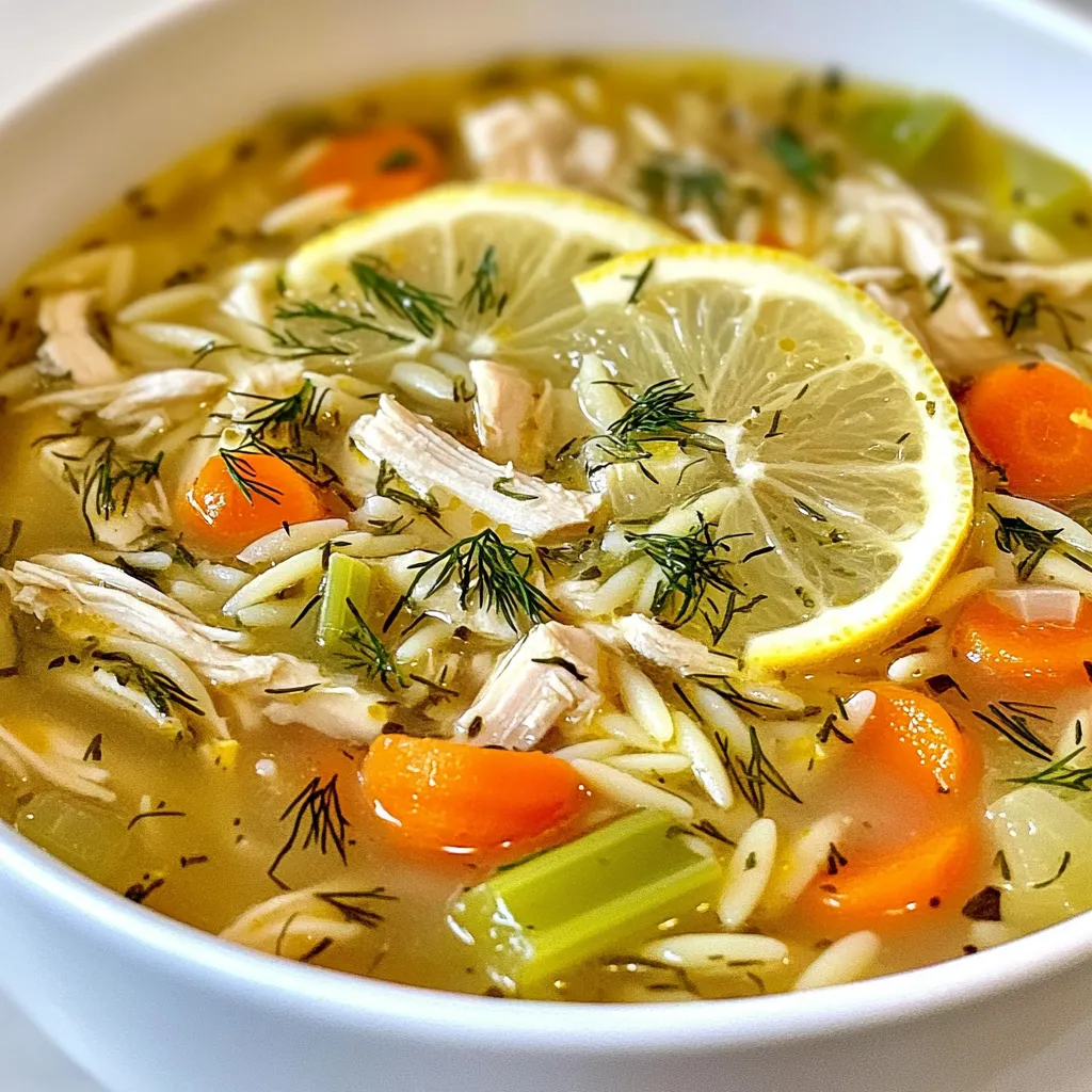 Eine erfrischende und herzhafte Suppe mit Hähnchen, Zitronensaft und frischen Kräutern.