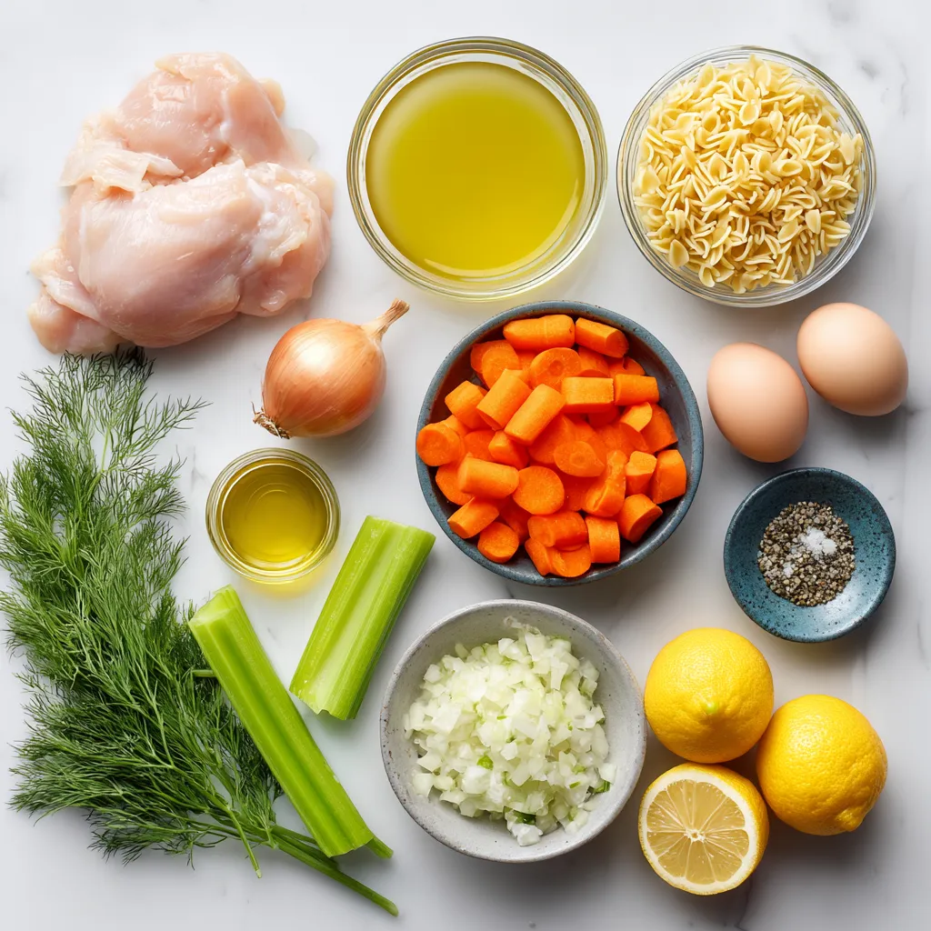 Hauptzutaten für die griechische Zitronen-Hühnchen-Suppe