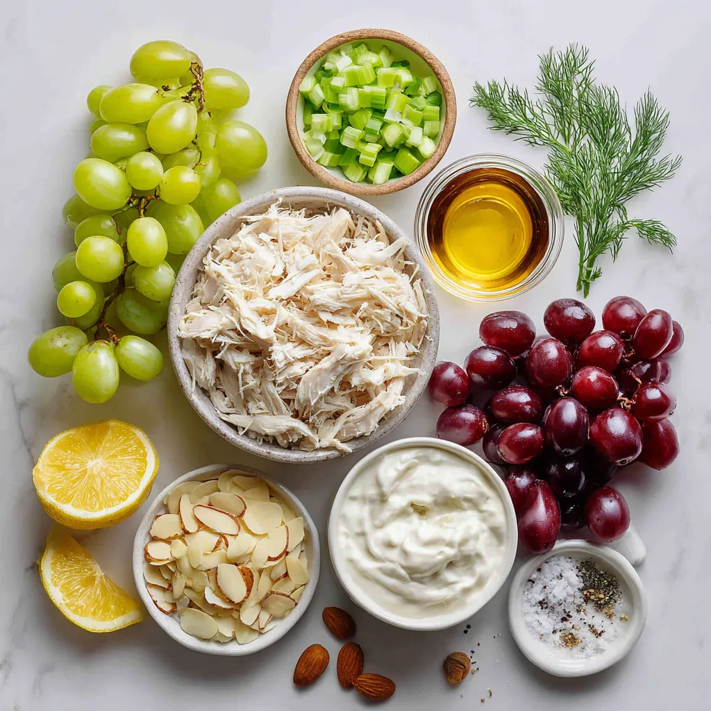 Für einen leckeren griechischen Joghurt-Hähnchensalat brauchst du diese Hauptzutaten: - 2 Tassen gekochte Hähnchenbrust, zerrupft - 1 Tasse ungesüßter griechischer Joghurt - 1/2 Tasse Sellerie, fein gehackt - 1/2 Tasse rote Trauben, halbiert - 1/4 Tasse Mandeln, in Scheiben - 1/4 Tasse Frühlingszwiebeln, gehackt Diese Zutaten bilden die Basis deines Salats. Das Hähnchen bringt Protein, während der griechische Joghurt für Cremigkeit sorgt. Um noch mehr Geschmack zu bekommen, füge diese Zutaten hinzu: - 1 Esslöffel Dijon-Senf - 1 Esslöffel Honig - 1 Esslöffel Zitronensaft Diese Zutaten bringen eine süße und herzhafte Note in deinen Salat. Der Dijon-Senf gibt einen leichten Biss, während Honig und Zitronensaft für Frische sorgen. Die richtigen Gewürze machen viel aus. Verwende: - Salz und Pfeffer nach Geschmack - Frischer Dill zur Garnitur (optional) Diese Gewürze heben den Geschmack des Salats hervor. Frischer Dill gibt zusätzlich eine schöne Note. Mit diesen Zutaten bist du bereit, einen leckeren griechischen Joghurt-Hähnchensalat zu machen. Es ist einfach und macht Spaß! {{ingredient_image_2}} Zuerst waschen Sie alle frischen Zutaten gut. Beginnen Sie mit der Hähnchenbrust. Wenn Sie gekochtes Hähnchen verwenden, zerkleinern Sie es in kleine Stücke. Das sorgt für eine bessere Mischung. Dann nehmen Sie den Sellerie und schneiden ihn fein. Dies gibt dem Salat einen schönen Crunch. Halbiere die roten Trauben. Dadurch erhalten Sie süße, saftige Stücke im Salat. Schließlich hacken Sie die Frühlingszwiebeln. Diese bringen einen tollen Geschmack. Jetzt geht es an die Joghurtsauce. Nehmen Sie eine große Rührschüssel. Geben Sie den griechischen Joghurt hinein. Fügen Sie dann den Dijon-Senf, Honig und Zitronensaft hinzu. Rühren Sie alles gut um, bis es glatt ist. Schmecken Sie die Mischung mit Salz und Pfeffer ab. So wird der Geschmack noch besser. Jetzt ist es an der Zeit, alles zusammenzubringen. Geben Sie das zerrupfte Hähnchen in die Joghurtsauce. Rühren Sie vorsichtig, damit das Hähnchen gut bedeckt ist. Fügen Sie nun den Sellerie, die Trauben, die Mandeln und die Frühlingszwiebeln hinzu. Rühren Sie sanft, damit alles gleichmäßig verteilt ist. Probieren Sie den Salat und passen Sie die Gewürze nach Ihrem Geschmack an. Lassen Sie den Salat für mindestens 30 Minuten im Kühlschrank ruhen. Vor dem Servieren rühren Sie alles noch einmal um. Garnieren Sie ihn mit frischem Dill, wenn Sie möchten. Ein häufiger Fehler ist, die Zutaten zu stark zu zerkleinern. Achten Sie darauf, Sellerie und Trauben in kleinere Stücke zu schneiden, aber nicht zu pürieren. Ein weiterer Fehler ist, den Salat nicht genug kühlen zu lassen. Lassen Sie ihn mindestens 30 Minuten im Kühlschrank, damit die Aromen sich gut vermischen. Schmecken Sie den Salat auch ab, bevor Sie ihn servieren. So stellen Sie sicher, dass er perfekt gewürzt ist. Um den Hähnchensalat frisch zu halten, bewahren Sie ihn in einem luftdichten Behälter auf. Legen Sie ihn in den Kühlschrank. So bleibt er bis zu drei Tage haltbar. Vermeiden Sie es, die Garnitur mit Dill vorher hinzuzufügen. Fügen Sie ihn erst vor dem Servieren hinzu, damit er frisch bleibt. Sie können den Salat leicht anpassen. Fügen Sie zum Beispiel Avocado für mehr Cremigkeit hinzu. Oder verwenden Sie Nüsse wie Walnüsse, um einen anderen Geschmack zu erzielen. Wenn Sie es schärfer mögen, können Sie etwas Cayennepfeffer oder Paprika hinzufügen. Auch frische Kräuter wie Schnittlauch oder Petersilie passen gut dazu. Pro Tipps Hähnchen vorbereiten: Verwenden Sie übrig gebliebenes Hähnchen oder gekochte Hähnchenbrust für eine schnelle Zubereitung. Variieren Sie die Nüsse: Probieren Sie anstelle von Mandeln Walnüsse oder Cashews für einen anderen Geschmack und Crunch. Frische Kräuter: Fügen Sie frische Kräuter wie Petersilie oder Schnittlauch hinzu, um dem Salat eine zusätzliche Geschmacksnote zu verleihen. Kühlzeit: Lassen Sie den Salat länger im Kühlschrank ruhen, um die Aromen noch besser entfalten zu lassen. {{image_4}} Wenn Sie eine vegetarische Version des Hähnchensalats möchten, können Sie das Hähnchen durch Kichererbsen ersetzen. Kichererbsen sind reich an Protein und fügen eine tolle Textur hinzu. Sie können auch Tofu verwenden. Schneiden Sie ihn in kleine Stücke und braten Sie ihn an, um mehr Geschmack zu erhalten. Für andere Proteinquellen können Sie gebratene Garnelen oder Thunfisch verwenden. Diese Optionen bringen neue Aromen in den Salat. Sie sind einfach zu verwenden und passen gut zu den anderen Zutaten. Wenn Sie es scharf mögen, probieren Sie geräucherte Forelle. Sie gibt dem Salat einen rauchigen Geschmack. Saisonale Zutaten machen Ihren Salat frisch und spannend. Im Frühling passen Spargel oder Erbsen gut. Im Sommer fügen Sie süße Pfirsiche oder Wassermelonen hinzu. Herbstliche Kürbiswürfel oder geröstete Süßkartoffeln bringen Wärme. Diese Zutaten machen den Salat bunter und leckerer. Der griechische Joghurt-Hähnchensalat hält sich gut im Kühlschrank. Lagern Sie ihn in einem luftdichten Behälter. Er bleibt frisch für 3 bis 4 Tage. Nach dieser Zeit kann der Geschmack nachlassen. Überprüfen Sie immer Geruch und Aussehen, bevor Sie ihn essen. Das Einfrieren von Hähnchensalat ist nicht ideal. Die Textur kann sich beim Auftauen ändern. Wenn Sie ihn dennoch einfrieren möchten, verwenden Sie einen gefrierfesten Behälter. Er bleibt bis zu 2 Monate haltbar. Zum Auftauen stellen Sie ihn einfach über Nacht in den Kühlschrank. Sie können Reste kreativ verwenden. Fügen Sie den Salat zu Wraps oder Sandwiches hinzu. Er passt gut zu frischem Gemüse oder als Füllung für Tortillas. Auch als Beilage zu einer Grillparty macht er sich gut. Experimentieren Sie mit neuen Kombinationen, um ihn aufzupeppen. Ja, griechischer Joghurt ist sehr gesund. Er hat weniger Fett als Mayonnaise. Zudem enthält er viel Protein, das gut für Muskeln ist. Auch Probiotika sind drin, die gut 