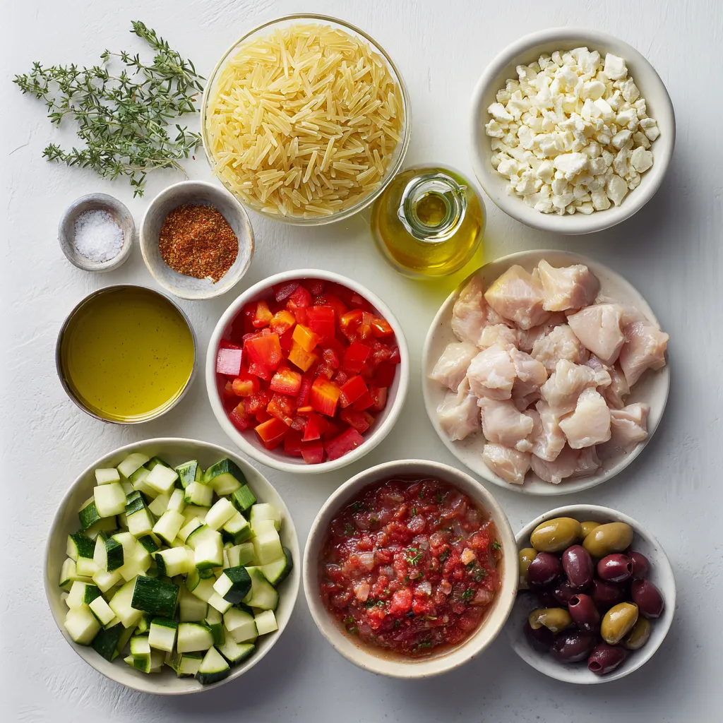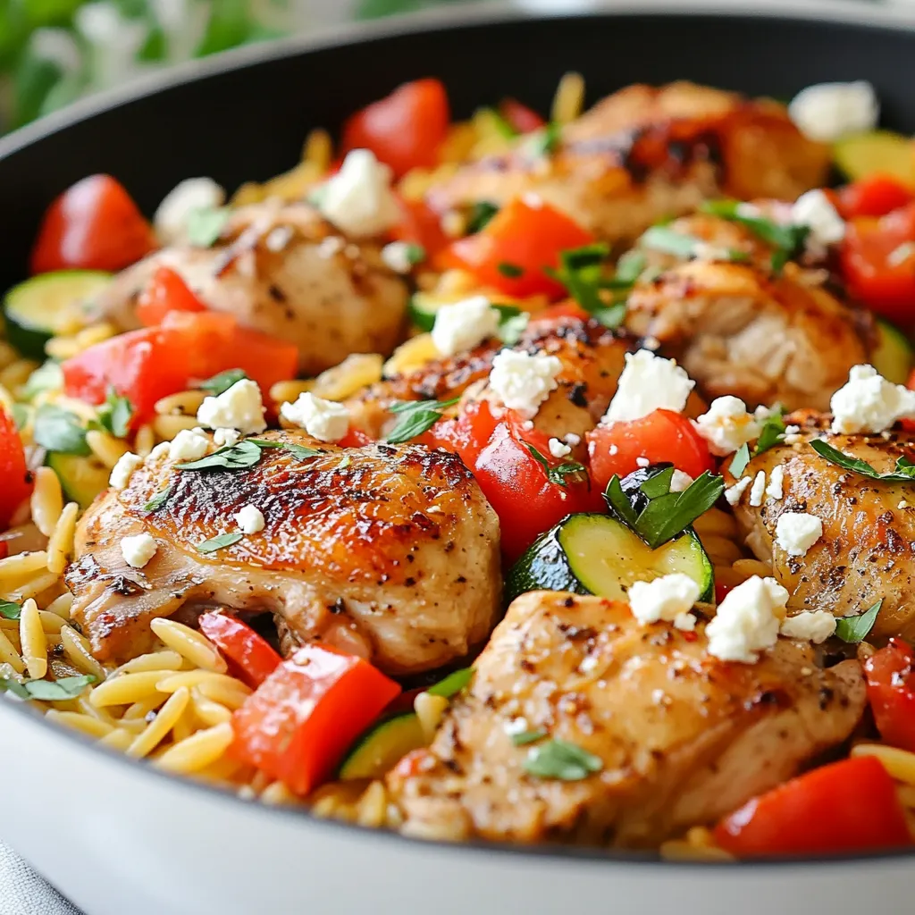 Ich liebe es, frische Zutaten zu verwenden. Hähnchenschenkel geben viel Geschmack und sind einfach zu handhaben. Die Orzo-Nudeln sind perfekt für dieses Gericht, da sie die Aromen gut aufnehmen. Gewürzte Tomaten bringen Saftigkeit und Frische.
