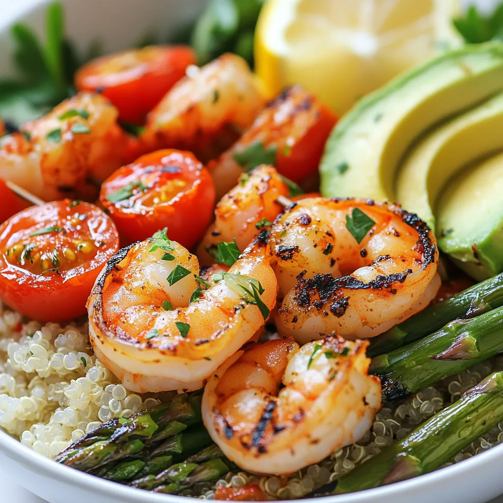 Die Garnelen sind die Hauptattraktion. Sie sind zart und voller Geschmack. Spargel bringt Frische und Knusprigkeit. Kirschtomaten fügen eine süße Note hinzu, während die Avocado Cremigkeit bietet. Quinoa oder Reis dient als Basis und macht die Schüssel sättigend.