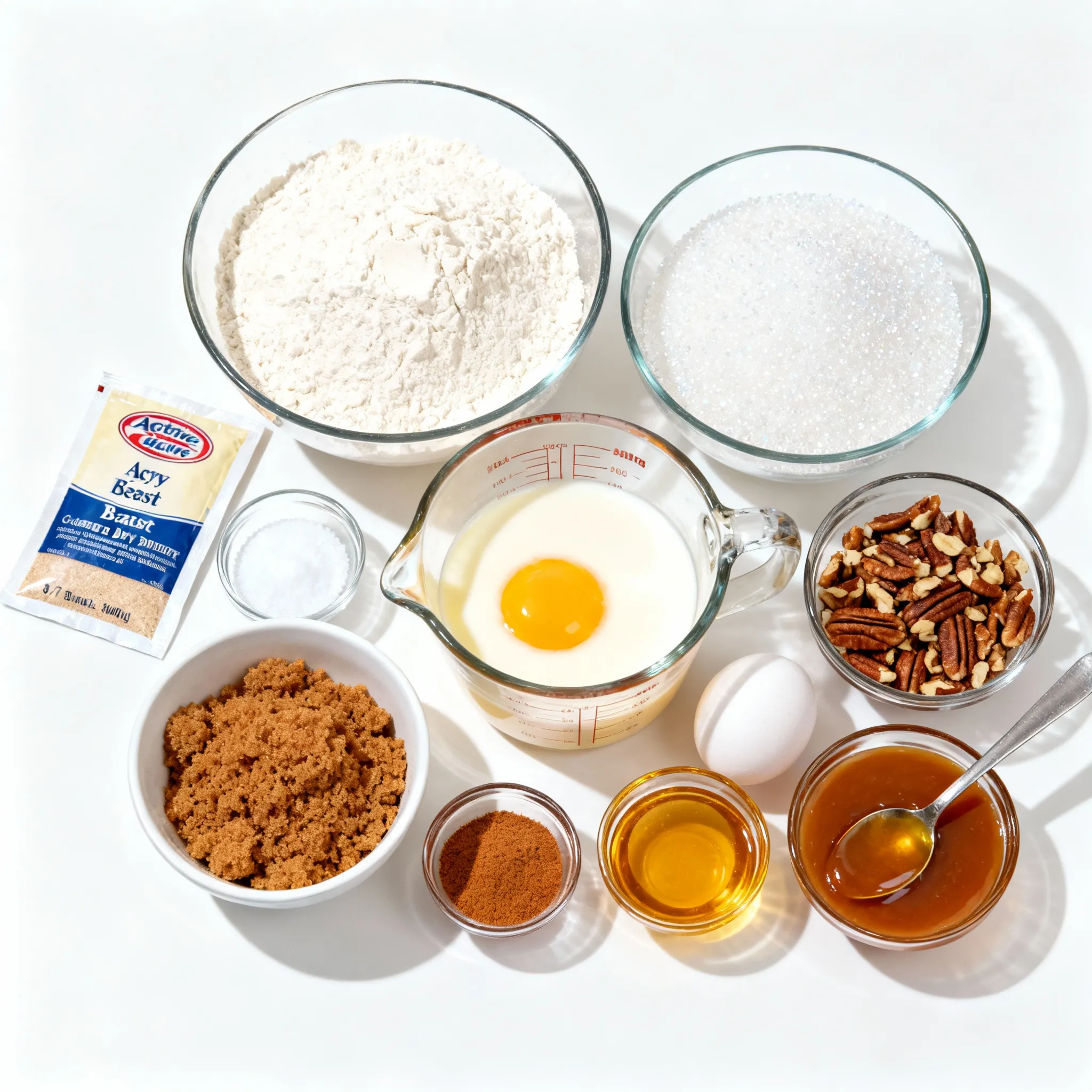 Die Hauptzutaten sind einfach und leicht zu finden. Allzweckmehl gibt dem Teig Struktur. Der Kristallzucker sorgt für Süße und hilft beim Aufgehen. Trockenhefe lässt die Buns locker und luftig werden. Warme Milch aktiviert die Hefe und macht den Teig geschmeidig. Geschmolzene Butter bringt Geschmack und Feuchtigkeit. Das große Ei bindet alles zusammen und macht den Teig stark.