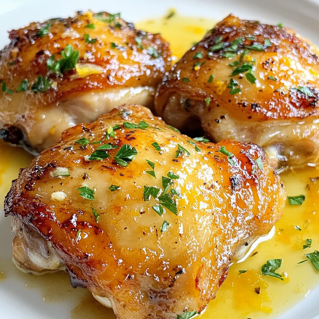 Ein köstliches Gericht mit Hühnchenschenkeln, die in einer aromatischen Knoblauchbuttersauce gebraten werden.