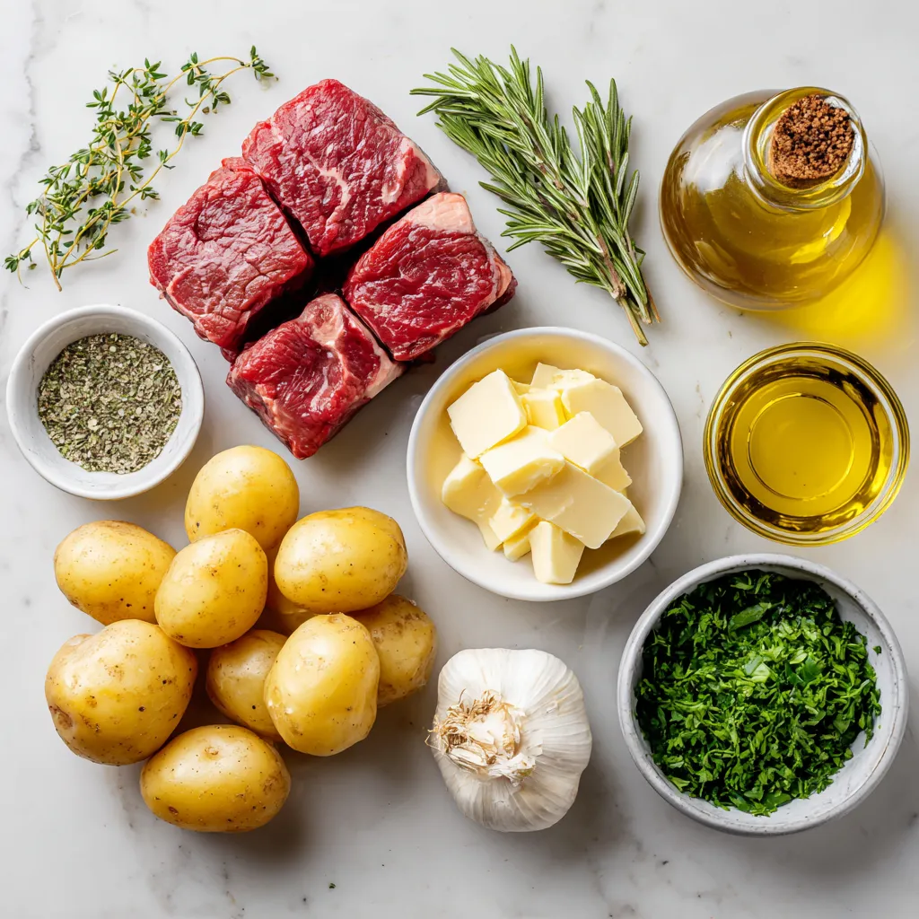 Die Hauptzutaten sind wichtig für den Geschmack. Rinderfilet gibt dem Gericht eine saftige Basis. Die Babykartoffeln fügen eine schöne Textur hinzu. Knoblauch bringt ein tolles Aroma. Rosmarin und Thymian geben dem Gericht frische Noten. Salzen und pfeffern Sie nach Belieben.