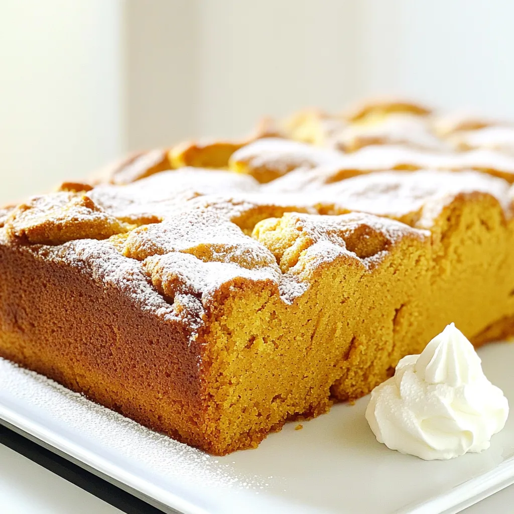 Wenn du den Kuchen servierst, gibt es viele Möglichkeiten. Puderzucker verleiht dem Kuchen einen schönen Look. Ein Klecks Schlagsahne oder eine Kugel Vanilleeis machen das Dessert noch besser. Du kannst auch Karamellsauce darüber träufeln. Sie harmoniert gut mit dem Kürbis. Für andere Aromen, probiere Zimt oder Muskatnuss. Diese Gewürze passen perfekt zu Kürbis.