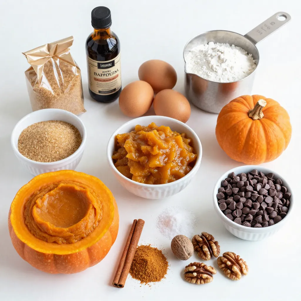Hauptzutaten für Kürbis-Schokoladenstückchen-Muffins