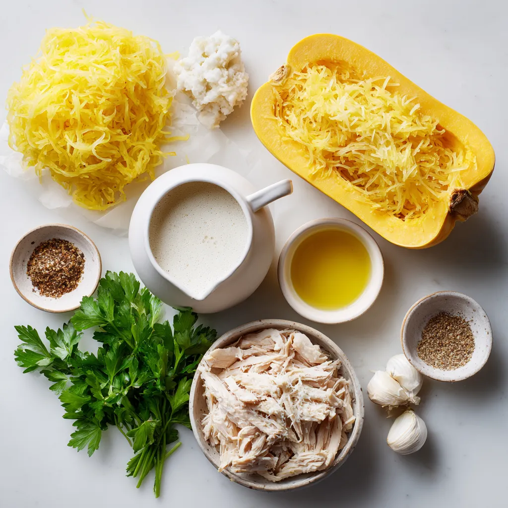 Diese Zutaten sind wichtig für den Geschmack und die Textur. Der Spaghetti-Kürbis ist die Hauptzutat. Er bietet eine tolle, gesunde Basis. Die Hühnerbrust sorgt für Proteine. Die Schlagsahne und der Parmesan machen die Soße cremig und lecker. Frischer Knoblauch gibt dem Gericht einen besonderen Pfiff.