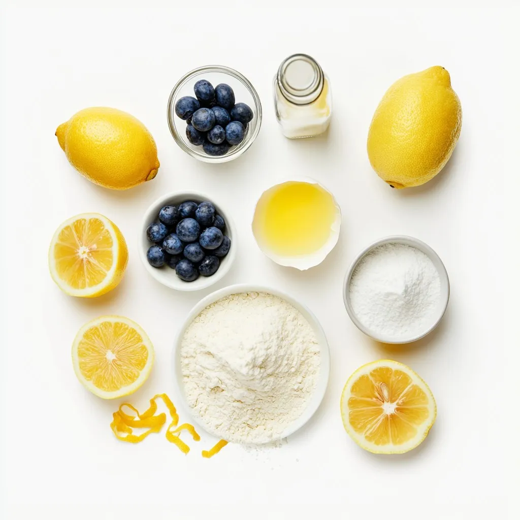 Hauptzutaten für den Zitronen-Heidelbeer-Pfundkuchen