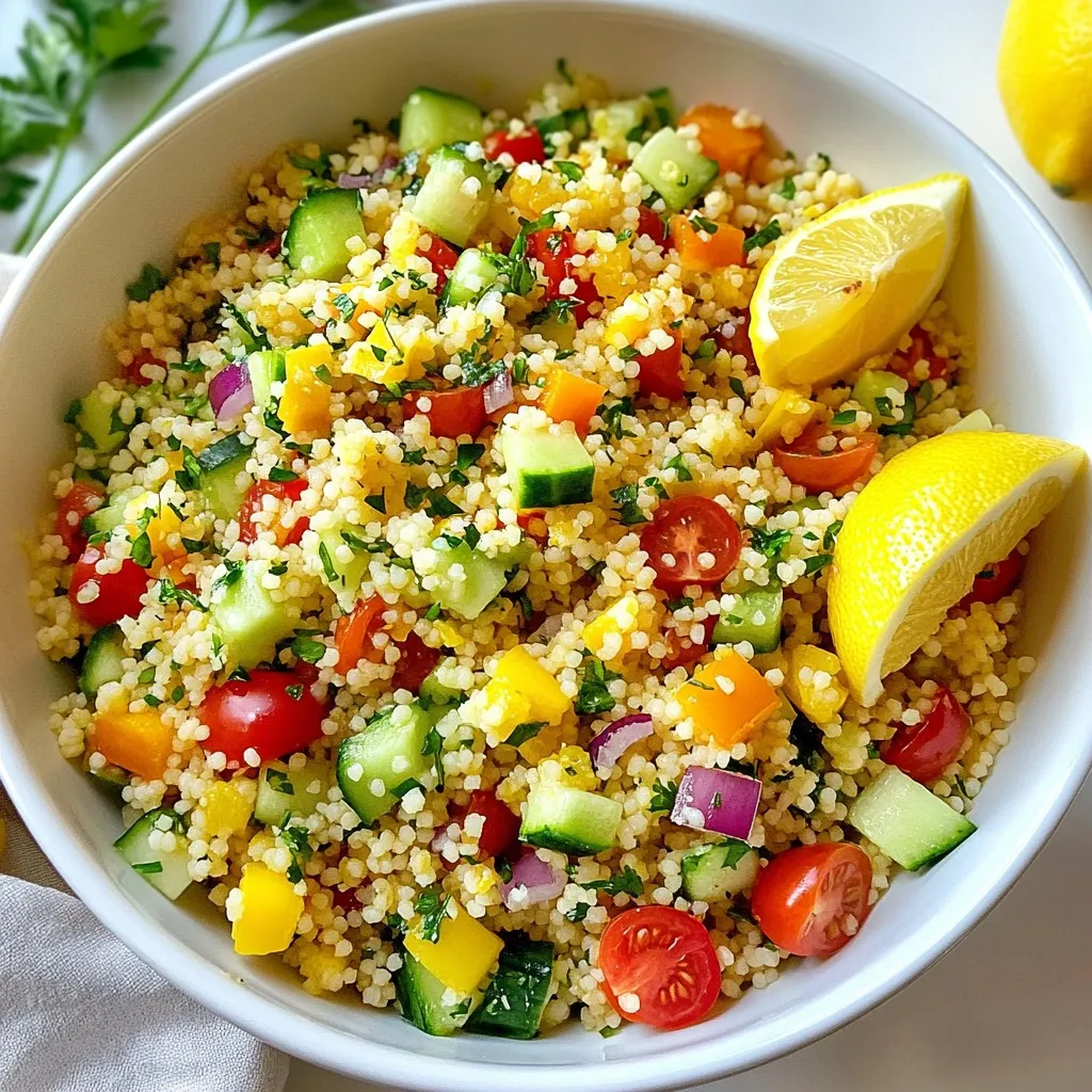 Um den Lemon Herb Couscous Salad frisch zu halten, lagern Sie ihn in einem luftdichten Behälter. Dies schützt die Aromen und die Frische der Zutaten. Stellen Sie sicher, dass der Salat vollständig abgekühlt ist, bevor Sie ihn in den Kühlschrank stellen.