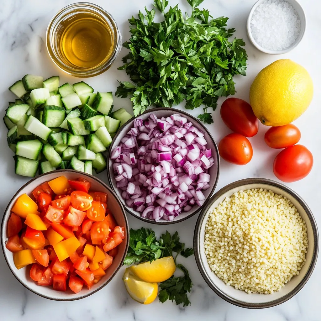 Um den Lemon Herb Couscous Salad zuzubereiten, benötigst du folgende Zutaten: