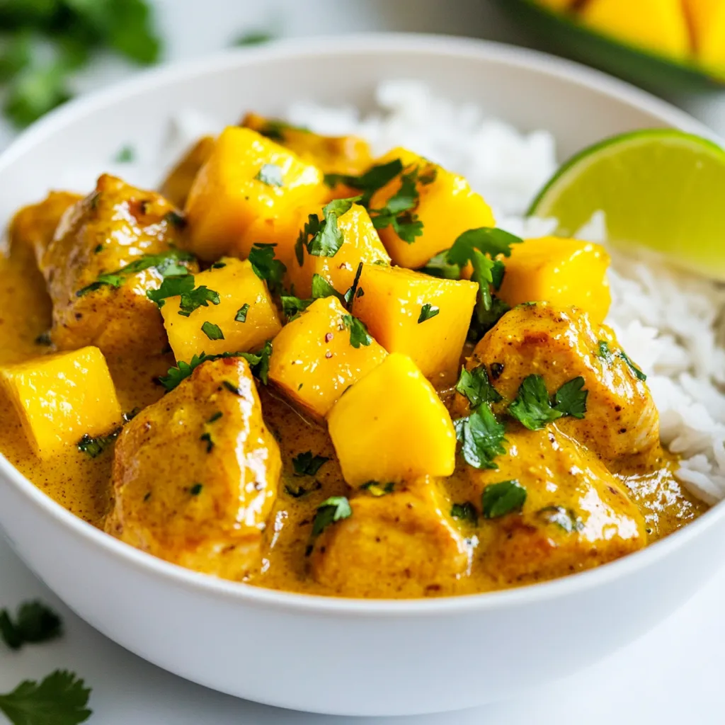 Ein köstliches Curry mit zartem Hähnchen und süßer Mango, perfekt für ein herzhaftes Abendessen.