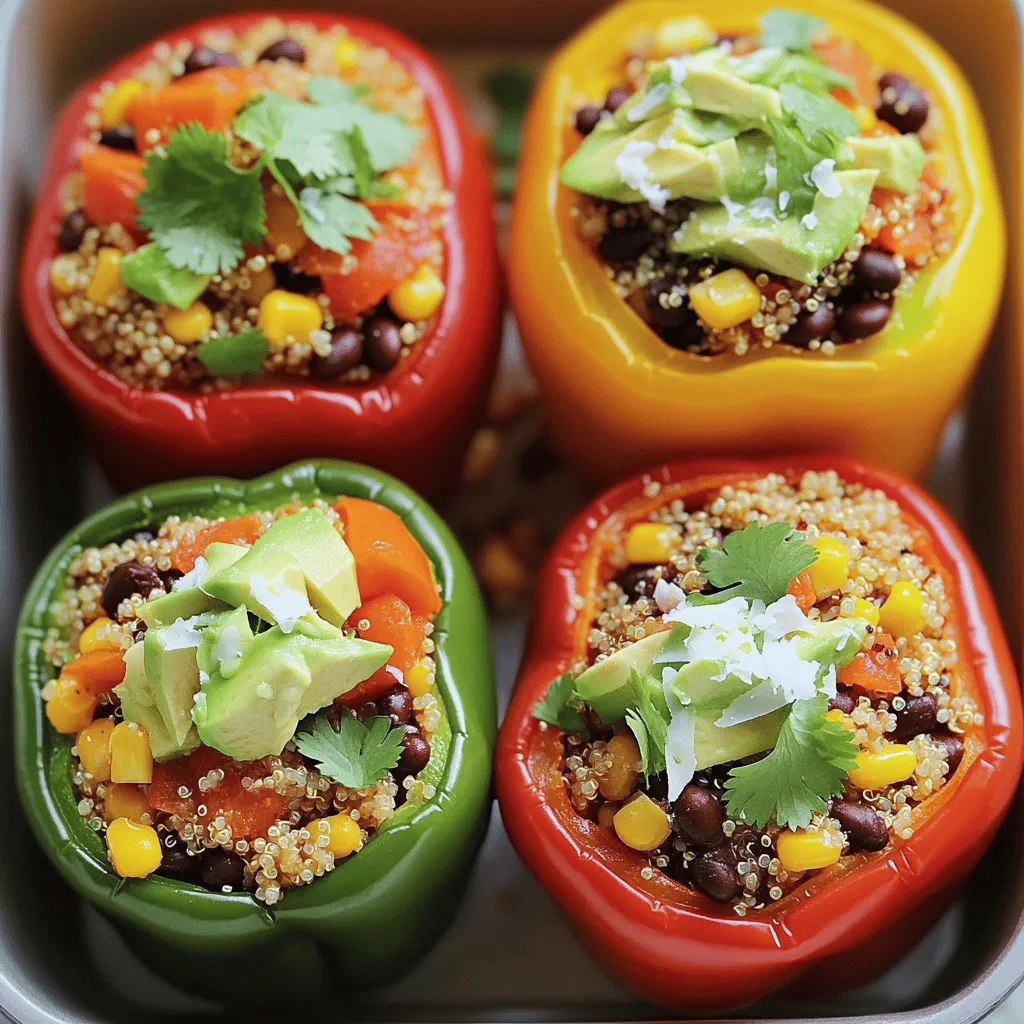 Diese Zutaten machen die mexikanischen Quinoa gefüllten Paprika lecker und nahrhaft. Sie sind perfekt für eine gesunde Mahlzeit.