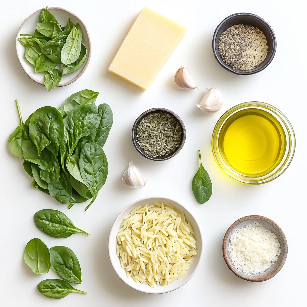 Ein cremiges und aromatisches One-Pot-Gericht mit Orzo-Nudeln, Knoblauch, Kräutern und Spinat.