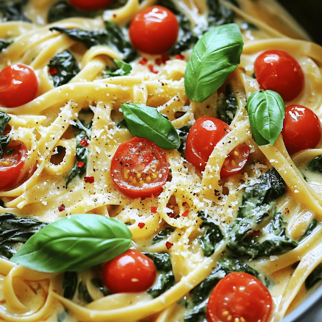 Zuerst musst du alle Zutaten bereitstellen. Das macht das Kochen einfach. Nimm 340 g deine Lieblingspasta, wie Spaghetti. Dann brauchst du 3 Tassen frischen Babyspinat. Hacke den Spinat grob, damit er gut kocht. Halbiere 1 Tasse Kirschtomaten für die frische Note. Hacke 3 Knoblauchzehen fein. Das gibt Geschmack. Bereite 4 Tassen Gemüsebrühe vor. Du kannst auch mehr verwenden, wenn es nötig ist. Stelle 1 Tasse geriebenen Parmesan bereit. Er wird das Gericht cremig machen. Und nicht vergessen: 1 Esslöffel Olivenöl und 1 Teelöffel rote Pfefferflocken, falls du es scharf magst. Halte auch Salz und Pfeffer bereit.
