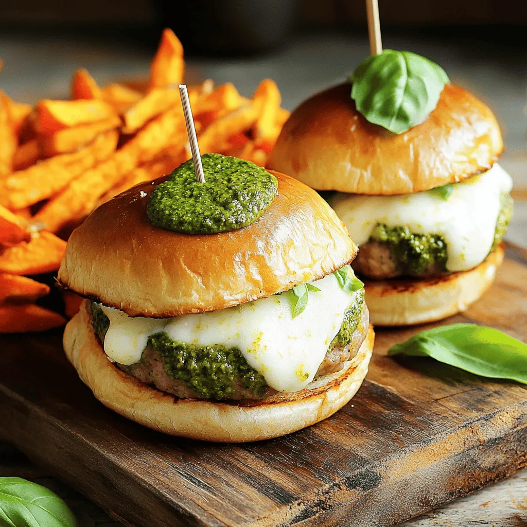Wenn du eine vegetarische oder vegane Option suchst, habe ich einige Ideen für dich. Du kannst das Putenfleisch durch schwarze Bohnen oder Linsen ersetzen. Diese Hülsenfrüchte sind nahrhaft und bieten eine gute Textur. Für den Käse kannst du veganen Mozzarella verwenden. Viele Marken bieten schmelzbaren Käse an, der perfekt für diese Burger ist. Pesto kann auch in einer veganen Version gefunden werden, oft aus Nüssen und Kräutern. So bleibt der Geschmack erhalten, und du hast eine tolle Option für alle.