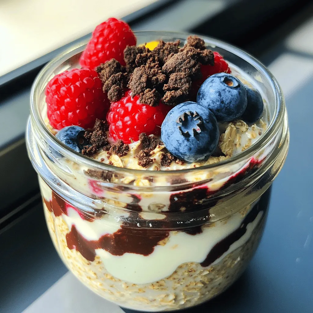 Um perfekte Overnight Oats zu machen, ist das richtige Mischverhältnis wichtig. Ich empfehle, eine Tasse Haferflocken mit zwei Tassen Mandelmilch zu kombinieren. So bleiben die Haferflocken weich und cremig. Verwende ungesüßte Mandelmilch für weniger Zucker. Das Proteinpulver gibt zusätzlichen Geschmack und Fülle. Vanilleextrakt sorgt für eine feine Note. Achte darauf, alles gut zu vermischen. Eine glatte Konsistenz ist der Schlüssel.