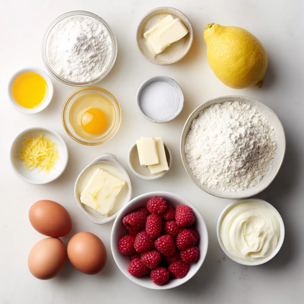 Um einen köstlichen Himbeer-Zitronen-Kuchen zu backen, benötigst du folgende Zutaten: