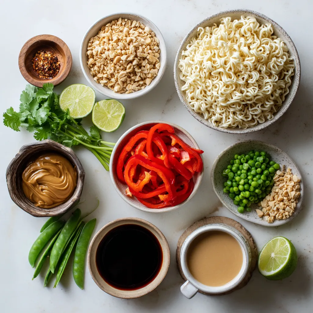 Hauptzutaten für scharfe Thai Erdnuss-Ramen