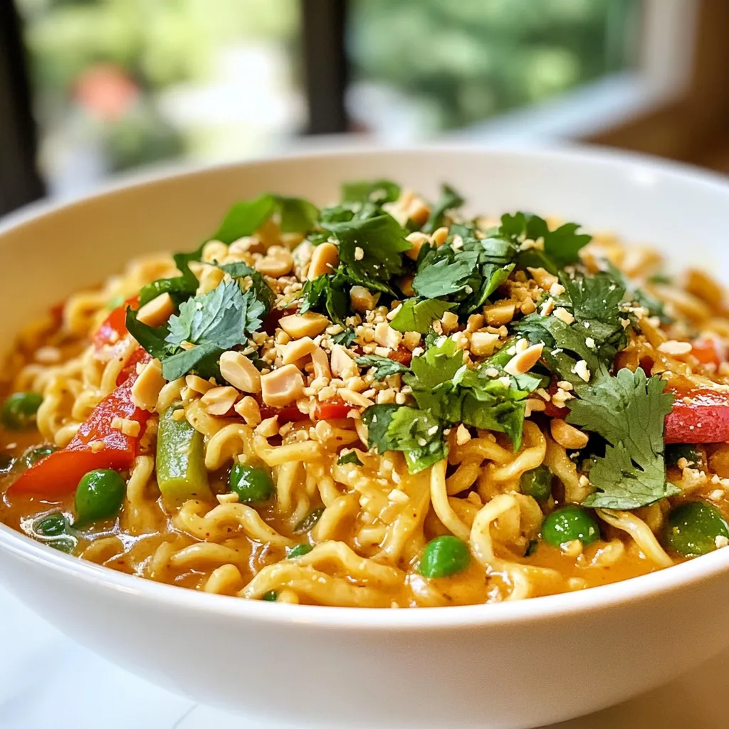 Ein würziges und cremiges Ramen-Gericht mit Erdnussbutter und frischem Gemüse.