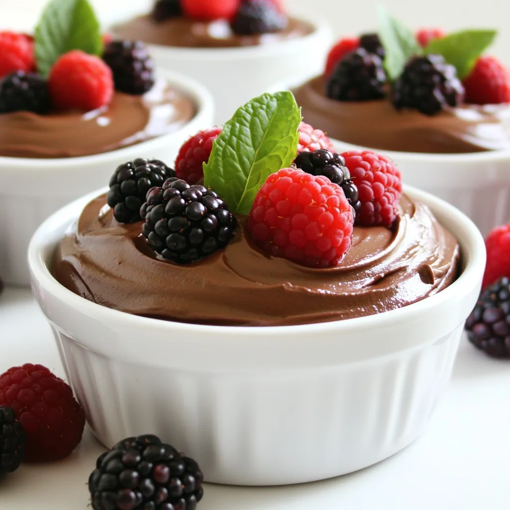 Fülle die Mousse jetzt in schöne Servierschalen oder Gläser. Stelle die Schalen für mindestens 30 Minuten in den Kühlschrank. So können sich die Aromen gut entfalten. Die Mousse wird auch fester. Dekoriere die Mousse vor dem Servieren mit frischen Beeren und Minzblättern. Diese bringen Farbe und Frische. Jetzt ist deine Schokoladen-Avocado-Mousse bereit für Genussmomente!
