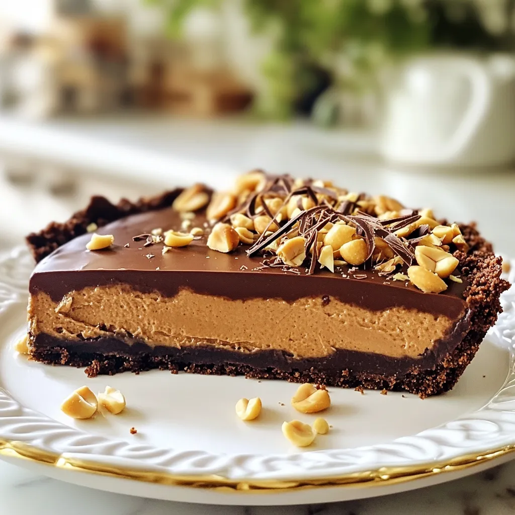 Eine köstliche und einfache No-Bake-Torte mit einer Schokoladen-Erdnussbutterfüllung.