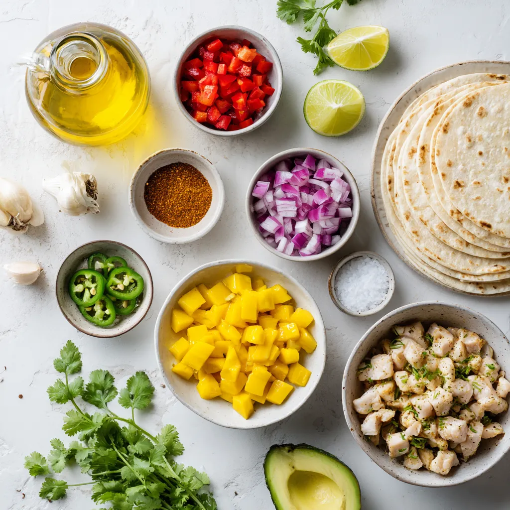Für die süß-würzigen Mango-Hähnchen-Tacos benötigst du frische und einfache Zutaten. Hier ist die Liste: