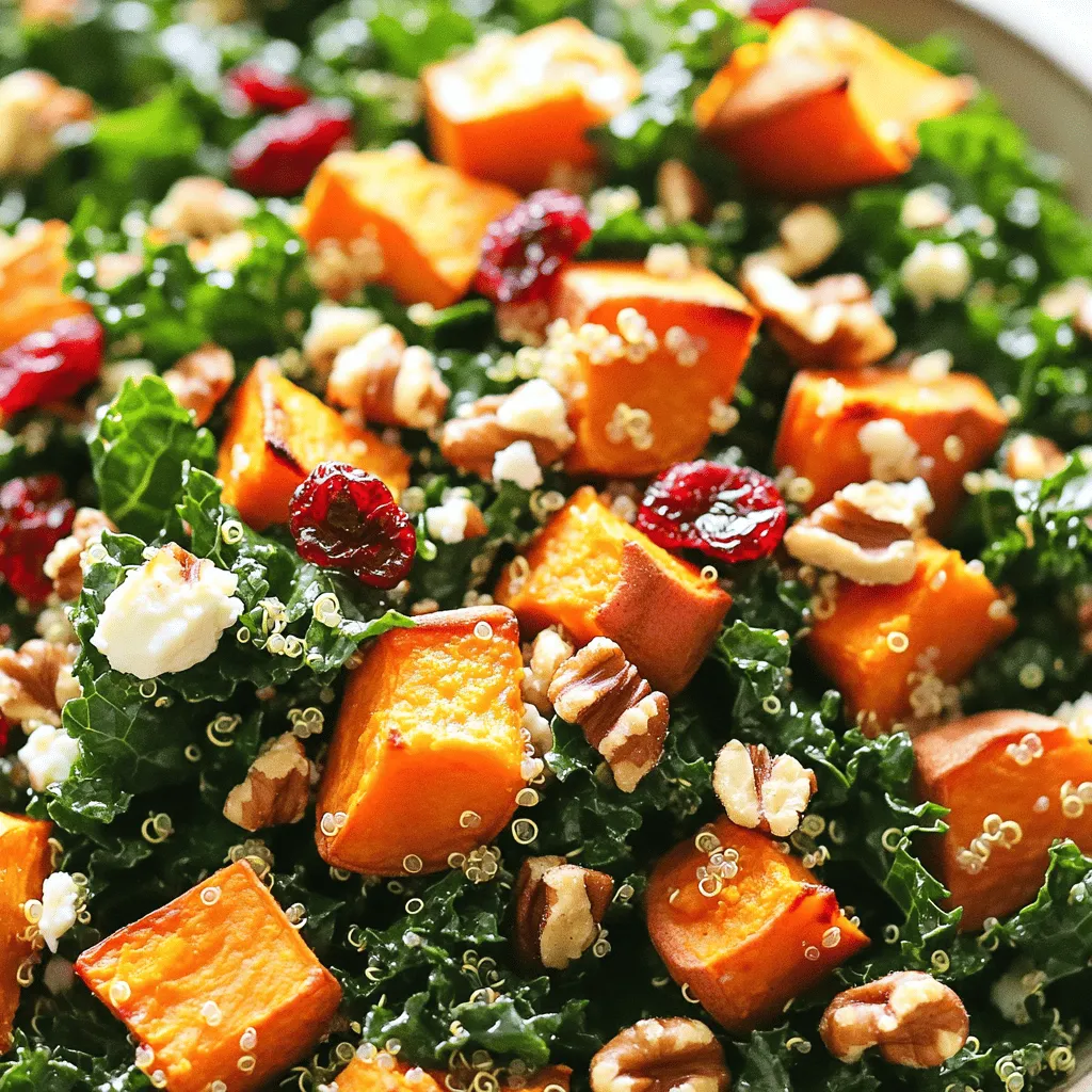 Ein großer Vorteil dieses Rezepts ist die Möglichkeit, vieles im Voraus zu machen. Kochen Sie die Quinoa am Vortag. Lassen Sie sie abkühlen und bewahren Sie sie im Kühlschrank auf. Sie können auch die Süßkartoffeln im Voraus rösten. Kühlen Sie sie nach dem Rösten ab und stellen Sie sie in den Kühlschrank. Der Grünkohl kann ebenfalls vorbereitet werden. Mischen Sie ihn mit Olivenöl und Salz und lassen Sie ihn ein paar Stunden ziehen. So wird er zarter und geschmackvoller.