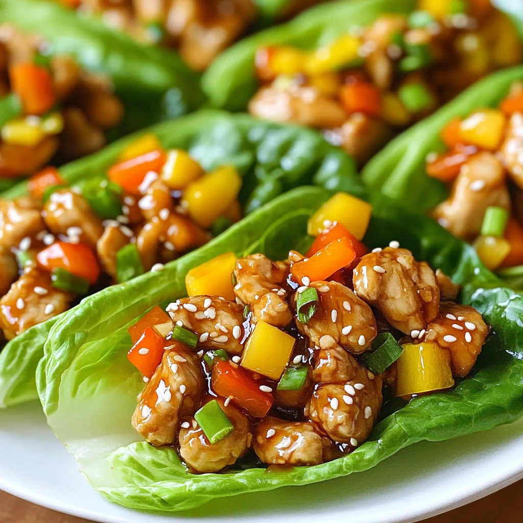 Leckere Wraps mit Teriyaki-Hühnchen, serviert in frischen Salatblättern.