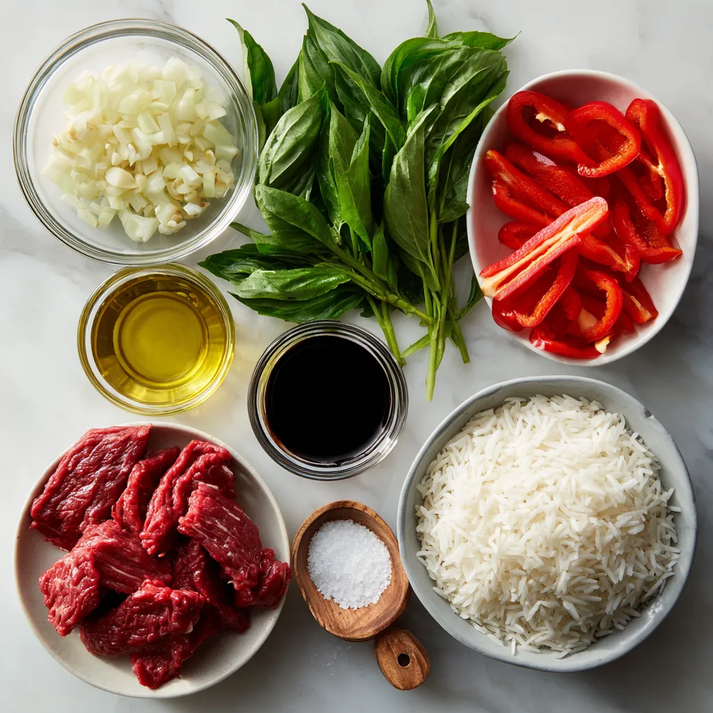 Für unser köstliches Thai Basilikum Rindfleisch brauche ich:
