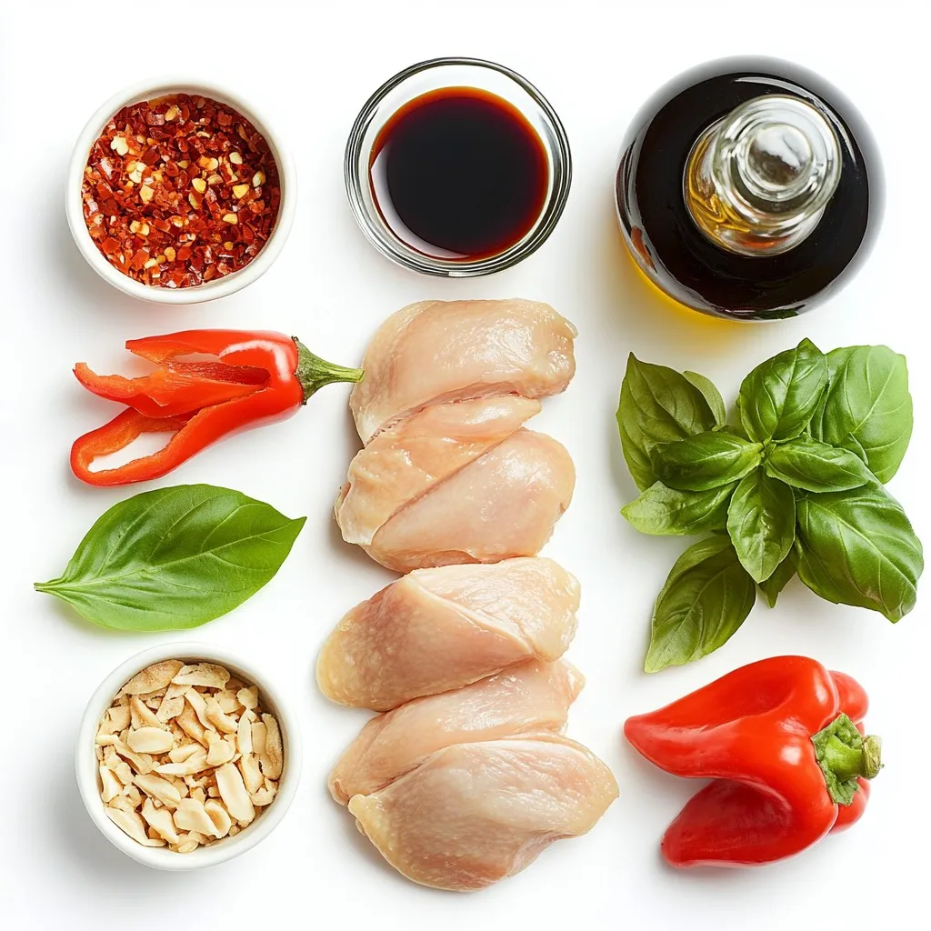 In diesem Rezept spielen frische Zutaten die Hauptrolle. Die Hähnchenschenkel sind zart und saftig. Ich liebe es, sie in dünne Streifen zu schneiden. Das macht das Braten schneller und gleichmäßiger. Thai-Basilikum verleiht dem Gericht seinen einzigartigen Geschmack. Dieser frische Geschmack harmoniert perfekt mit dem Hähnchen.